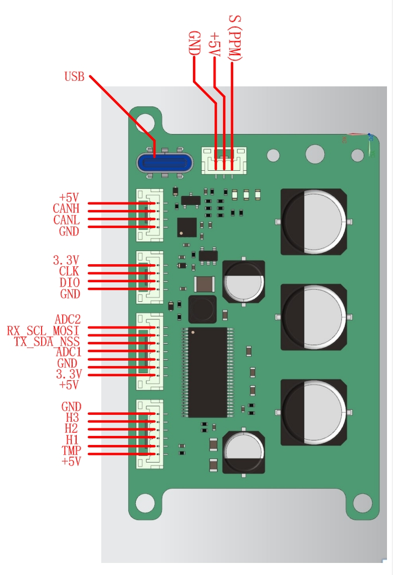 本电调支持2.4G无线遥控器控制,支持ADC控制,支持UART控制,支持CAN总线控制等等