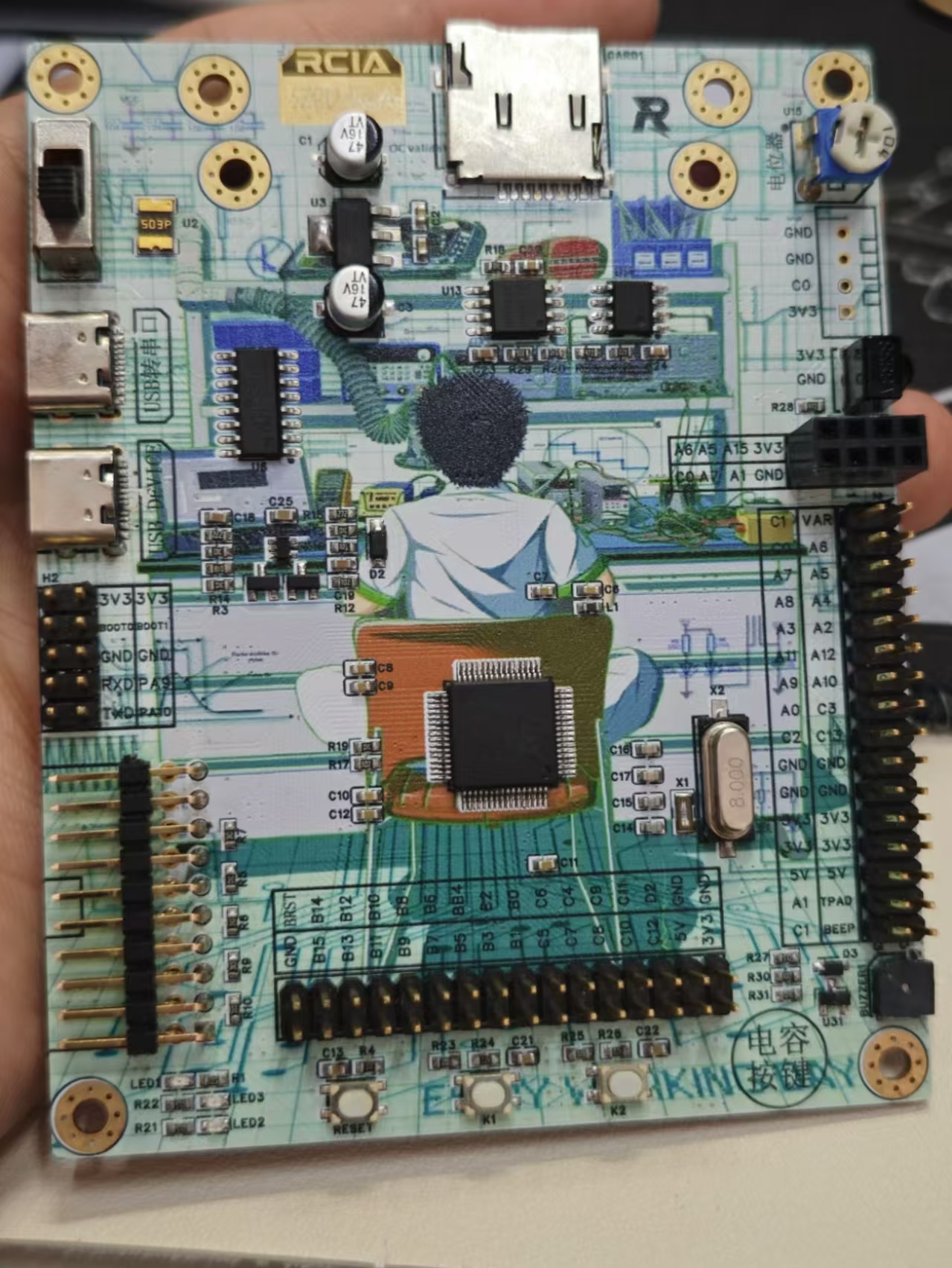 很久之前想做一块开发板自己学习使用的,所以做了彩色丝印的。JLC的彩色丝印是真的好看~