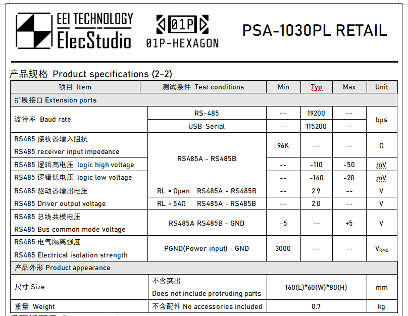 - 具有1000Vrms电气隔离强度的RS-485扩展接口。
