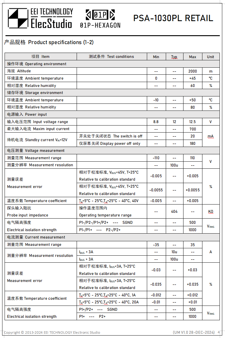 EEI TECHNOLOGY HEXAGON-3rd Series PSA-1030PL DC Power Meter