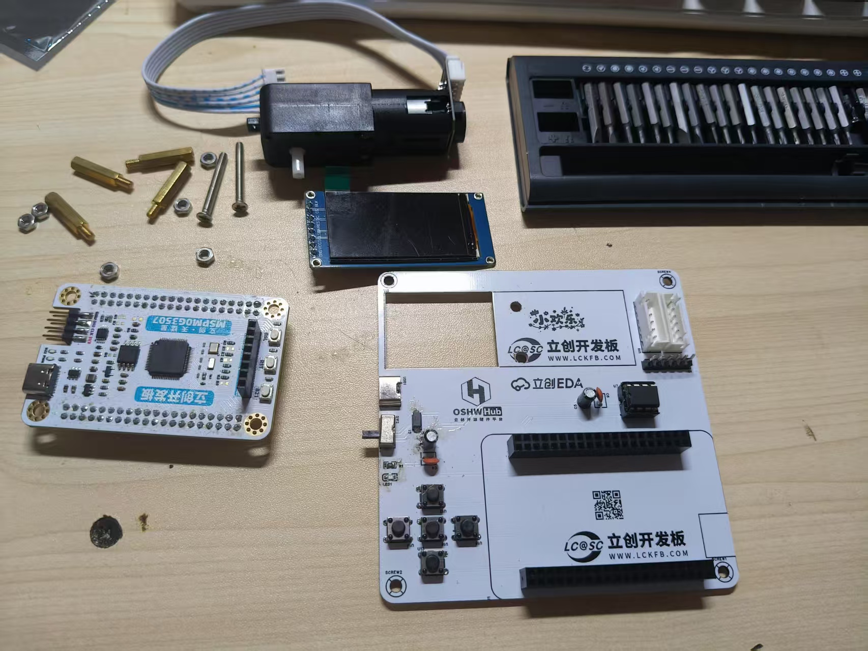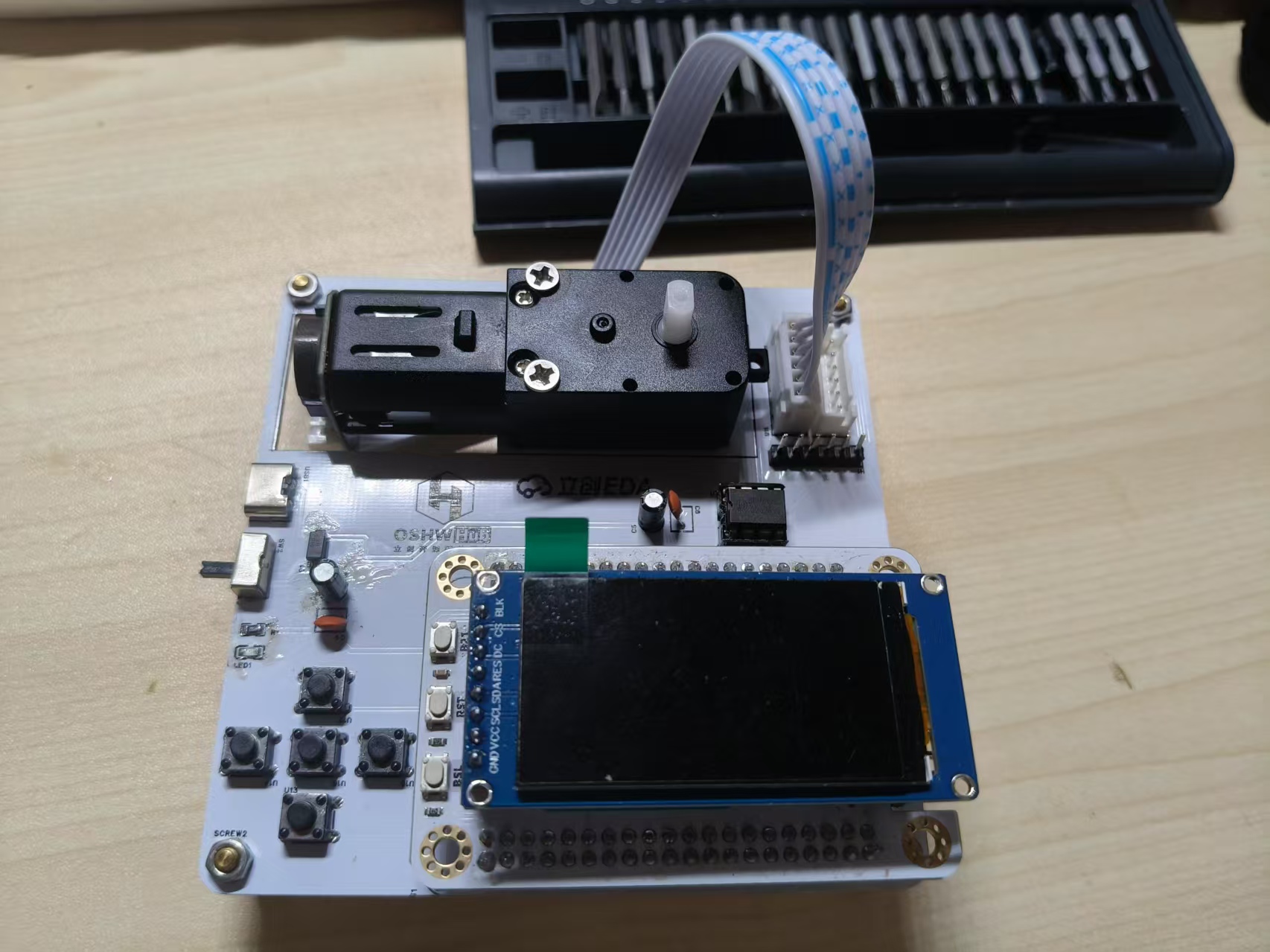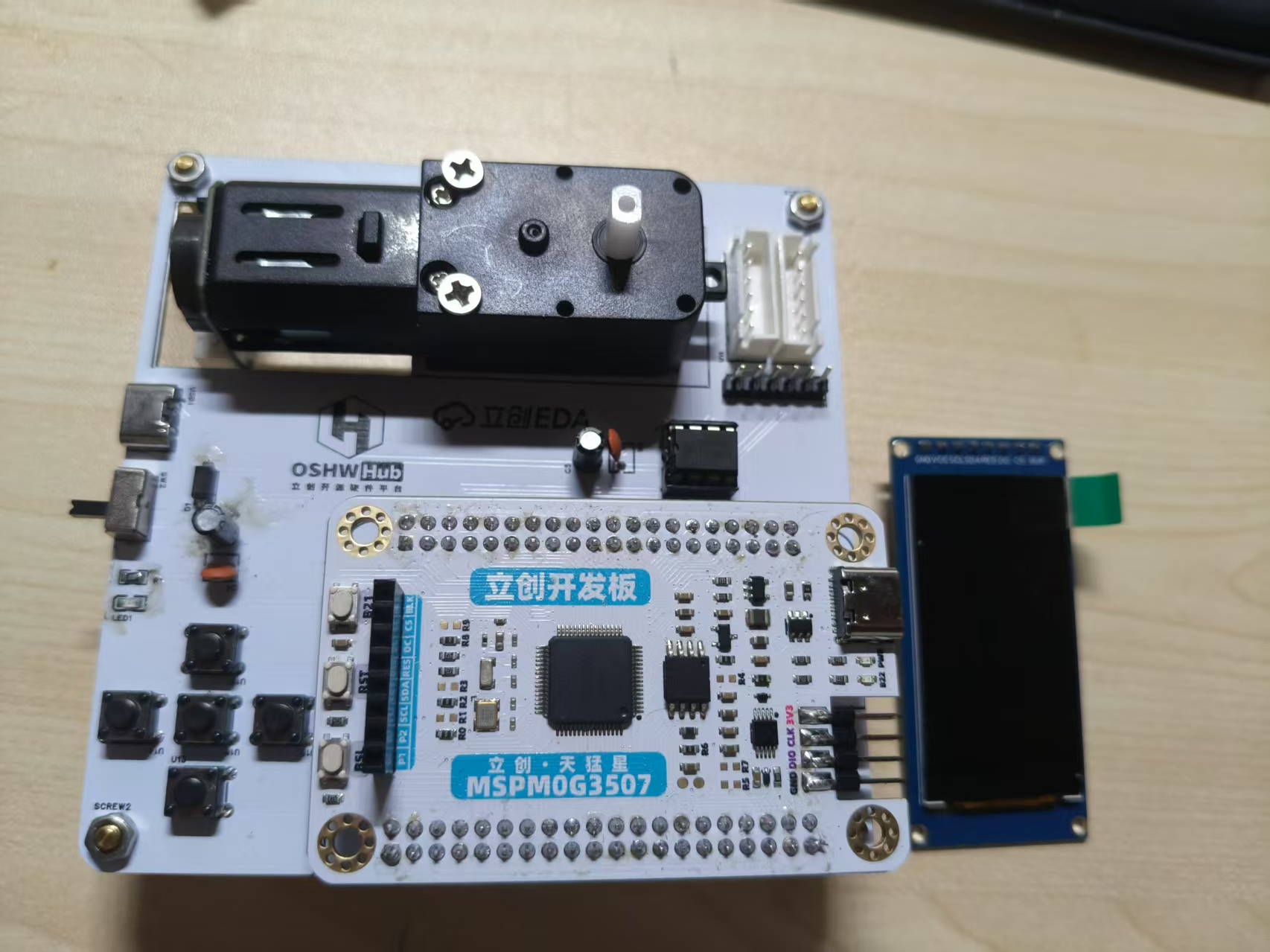最后把电机线和LCD屏幕安装好