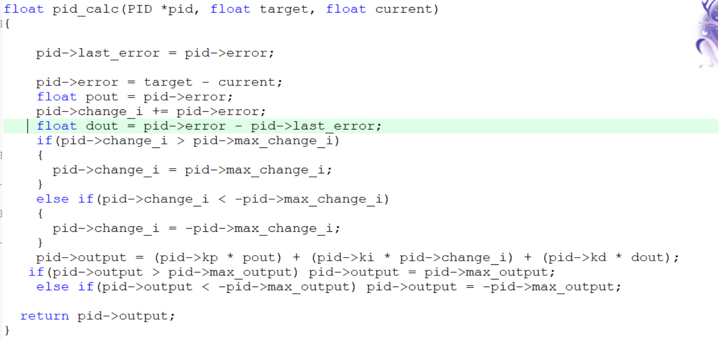 pid_calc函数主要完成PID中的各个参数的计算