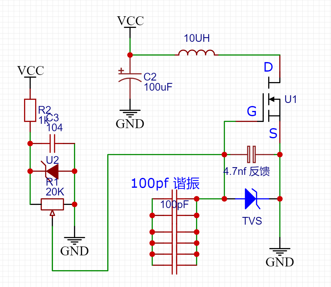 电容:100pf谐振电容最好选用高频低介损耗电容,例如np0电容,耐压须选择2kv。容量不宜过小,可以大,但是频率会降低。当频率过低时,不易成环