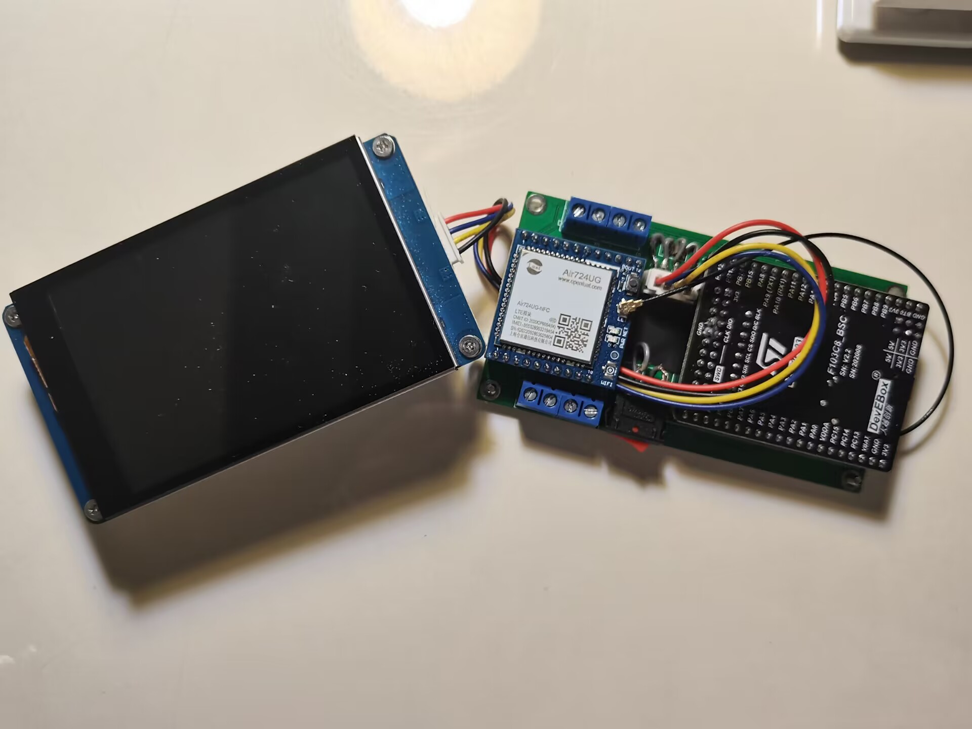 本产品共分三个模块,合宙Air724UG,STM32f103c8t6核心板,串口屏,自行设计母座将其组合起来