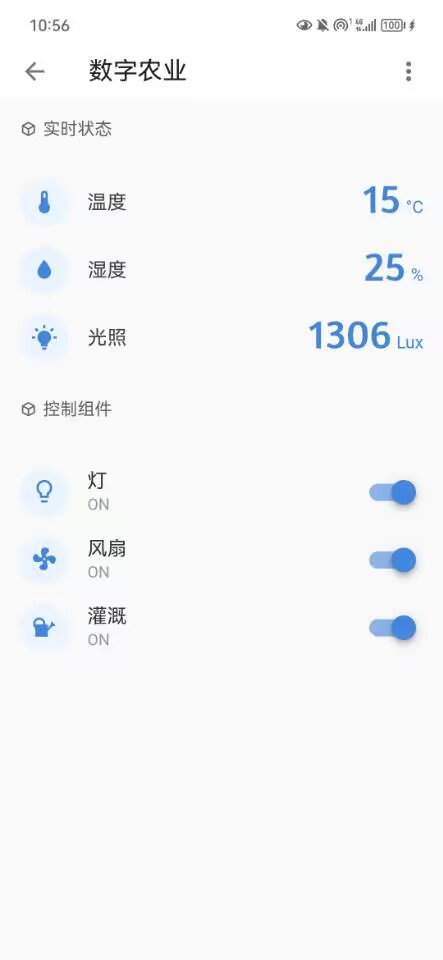 STM32f103c8t6采集温度,湿度,光照强度,上传云端,并展示在串口屏上,云端采用开源平台ThingsCloud,另外支持移动端APP“ThingsX”,整体来说,用户可分别通过触摸屏,网页端,移动端监控农业生产,本实验方便起见将实际农业生产设备替换成三个LED来演示。
