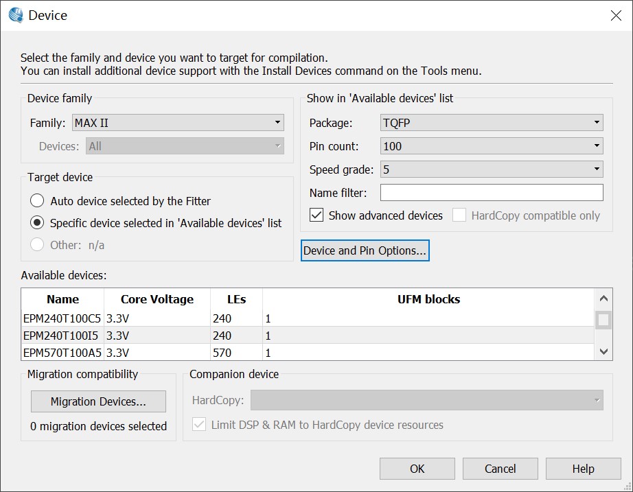 第二步:出现如图所示的Device面板后选择“Devie and Pin Options...“按钮。