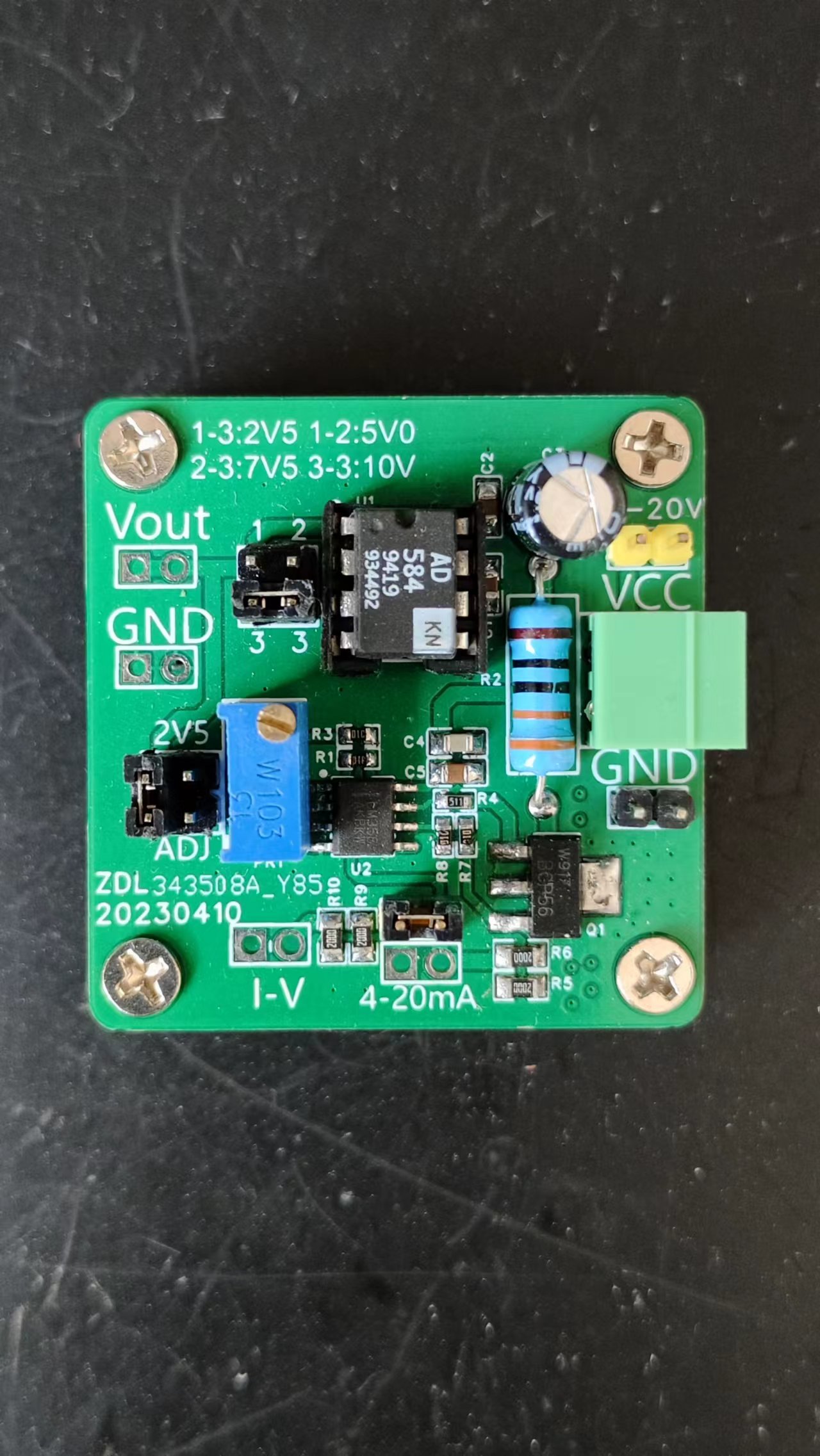ad584校准模块 附带一路V-I恒流源转换电路,可以串入电流表测量电流。