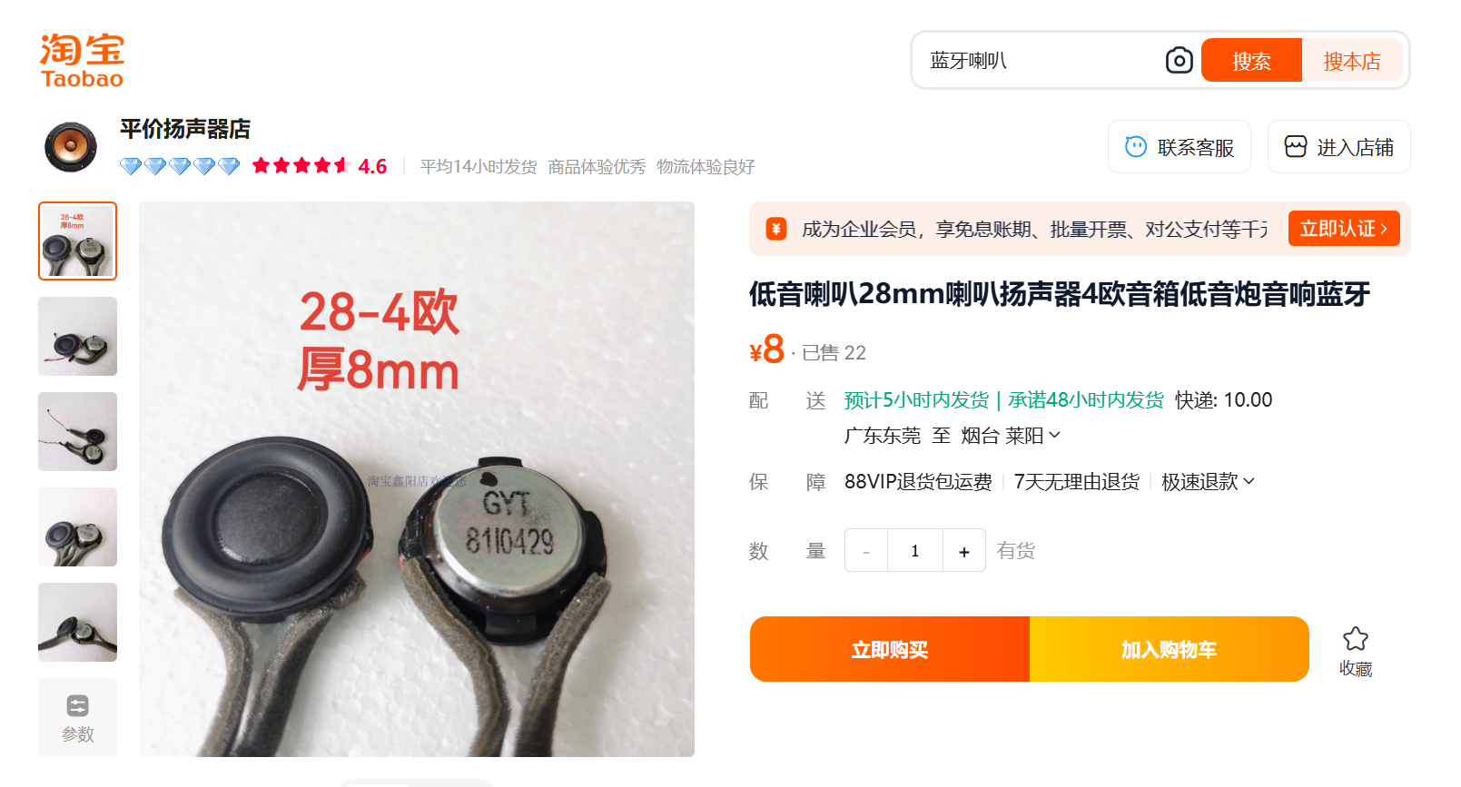 3、喇叭购买链接如下:(任意一种都行,或者其他直径28mm的喇叭)