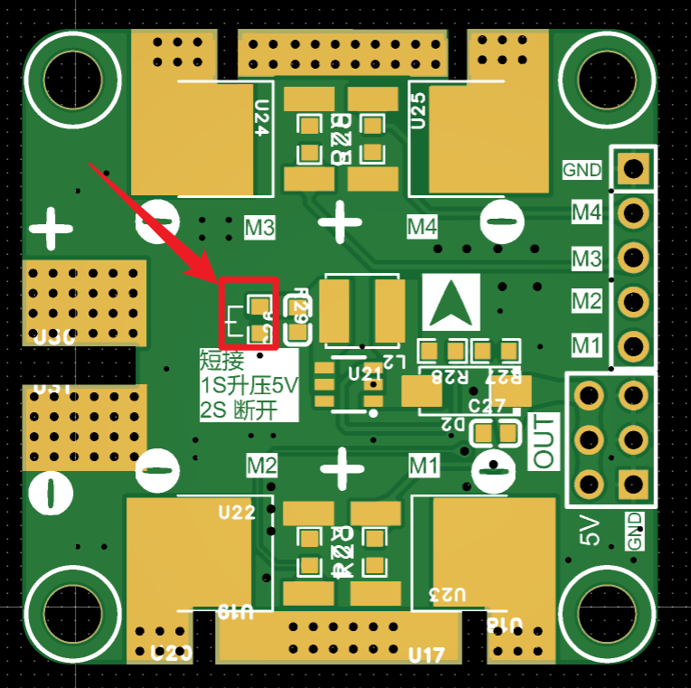 - 带1S升压5V2A(给飞控供电)(2s时断开下图跳线)
