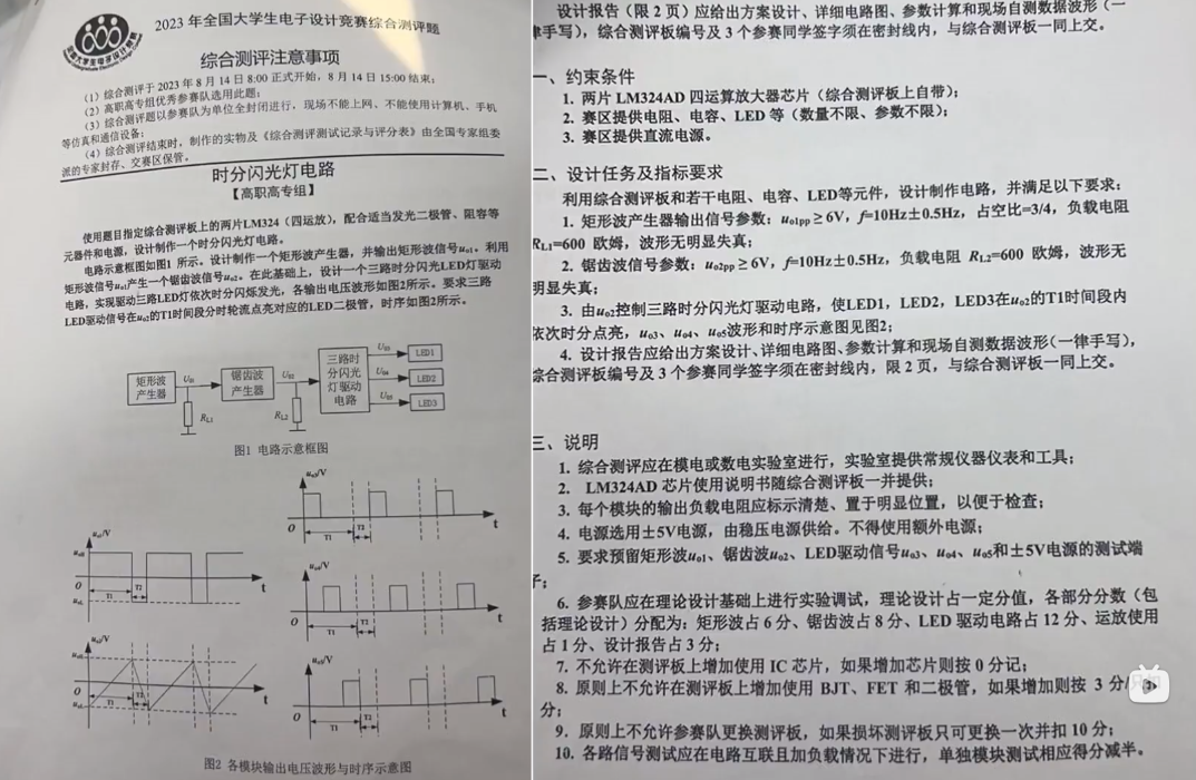 简介:2023年全国大学生电子设计竞赛综合测评题、电赛综测题开源协议