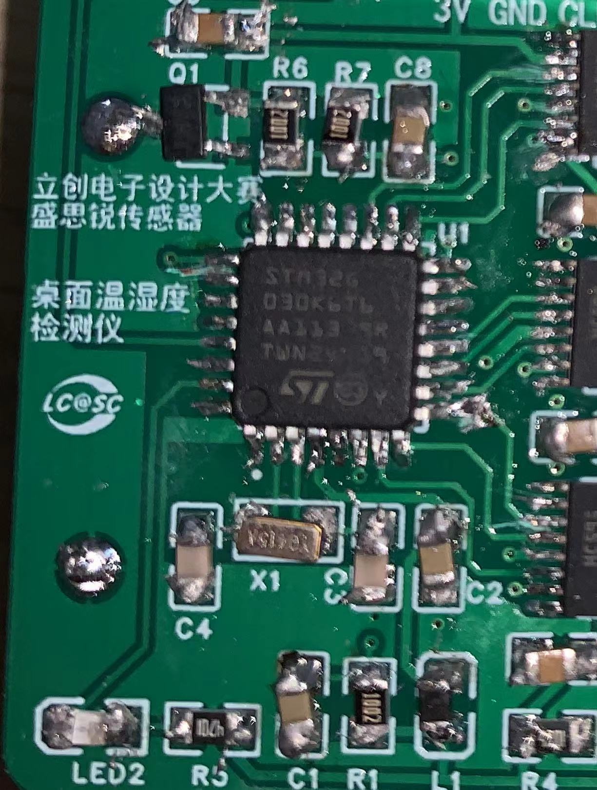 主控采用STM32G030K6T6,采用嘉立创官方源码,程序烧录进后,硬件工作正常。当按键按下,会依次显示温度、湿度,循环两次,之后数码管熄灭。