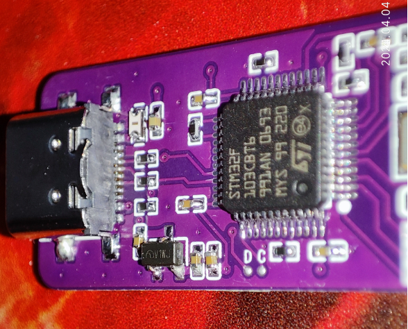 主要功能和市面上的一样,可以用来对STM32单片机烧录,调试(在keil环境和cubeIDE环境下),这里只引出了SWDIO和SWCLK引脚(固件可以升级),还有串口的RXD和TXD,方便单片机通过串口向上位机打印信息。这里没有SWIM引脚,也没有复位的RST引脚,所以不能对STM8单片机下载。使用STM32F103CBT6最小系统,精简了外围元件,加入了一个TVS阵列防静电的。