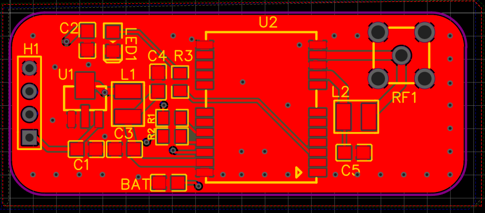 焊接时电感的封装没调好,焊盘显得大,不影响使用;电池封装自己画的,如果不使用电池可以不焊接BAT电容,电池最初设计为胎压电池焊接使用,忘记设计充电电路,暂时废弃