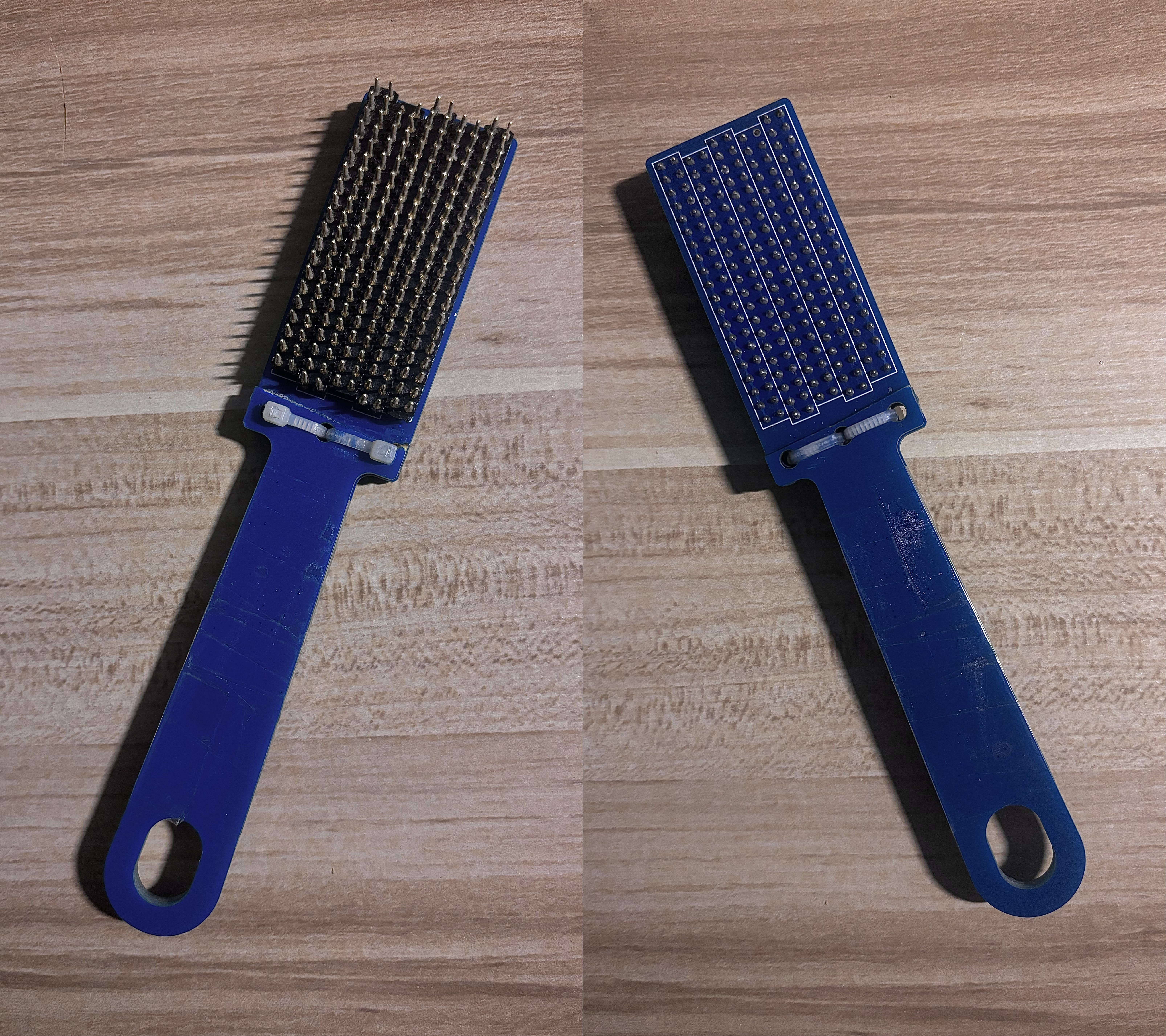 通过在PCB上焊接排针并组装而能够作为一把梳子使用。