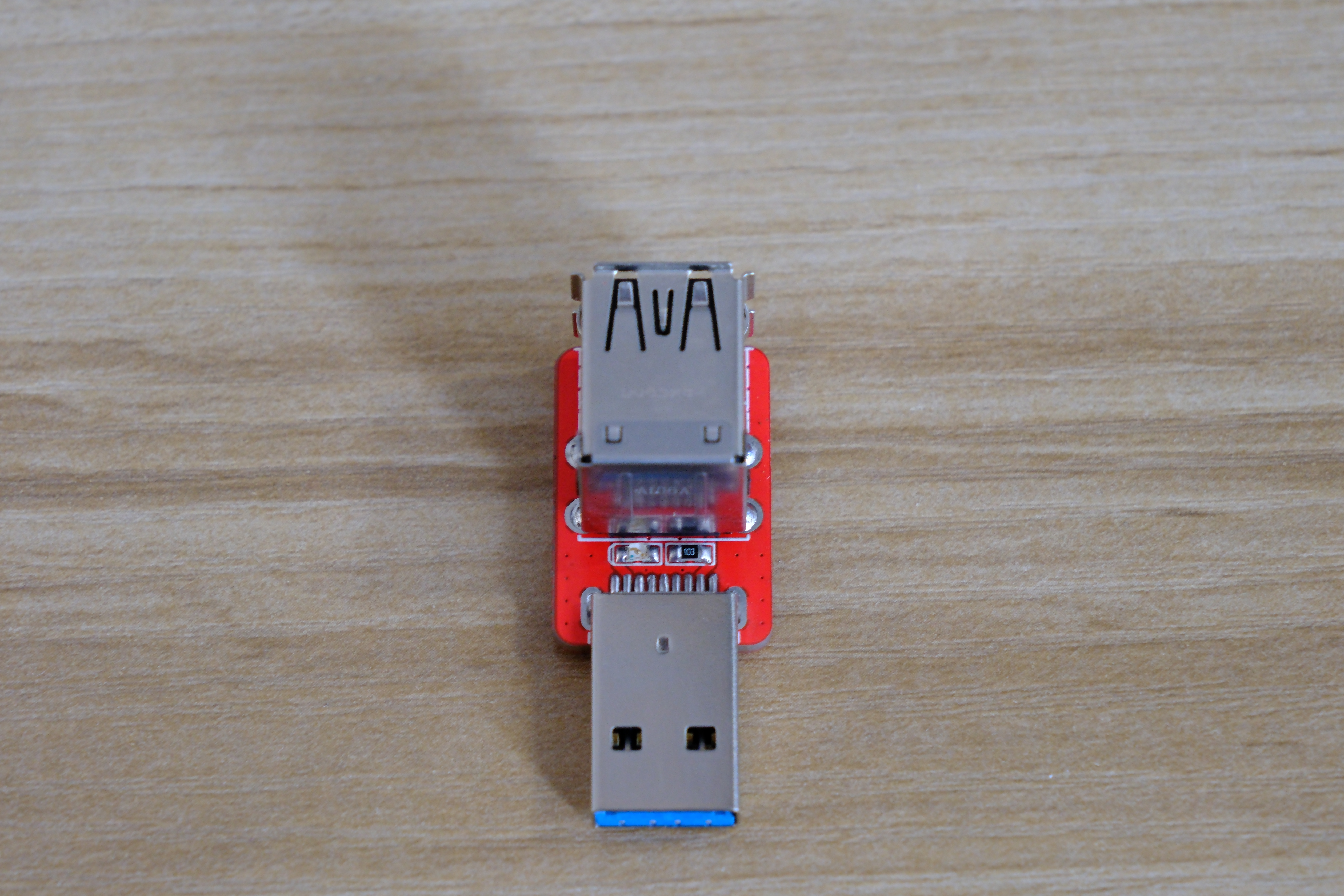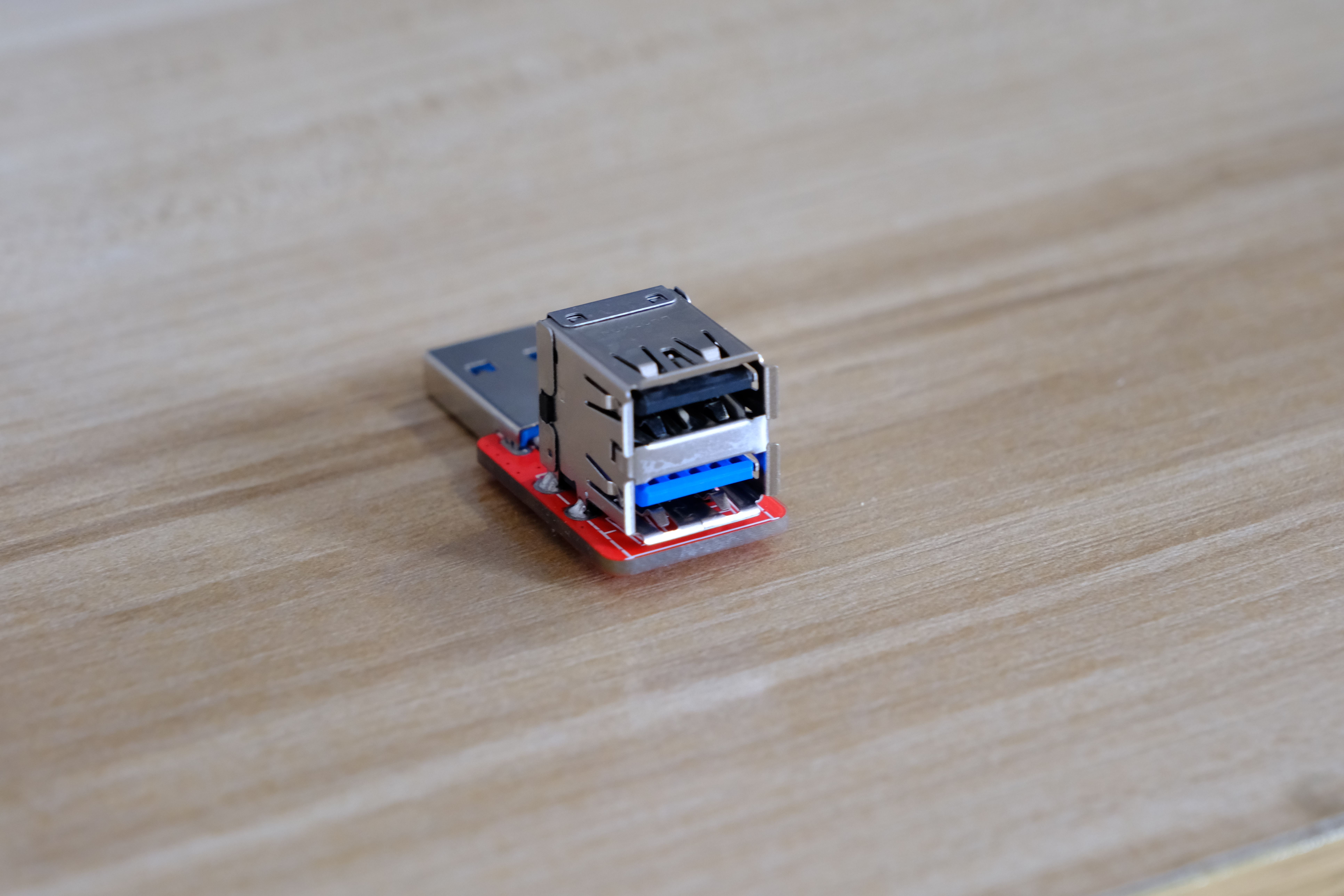 本工程提供的PCBA将一个USB3.0A口中的3.0与2.0的数据线路分离开来,形成两个独立的接口。经测试,两个接口都能正常使用。