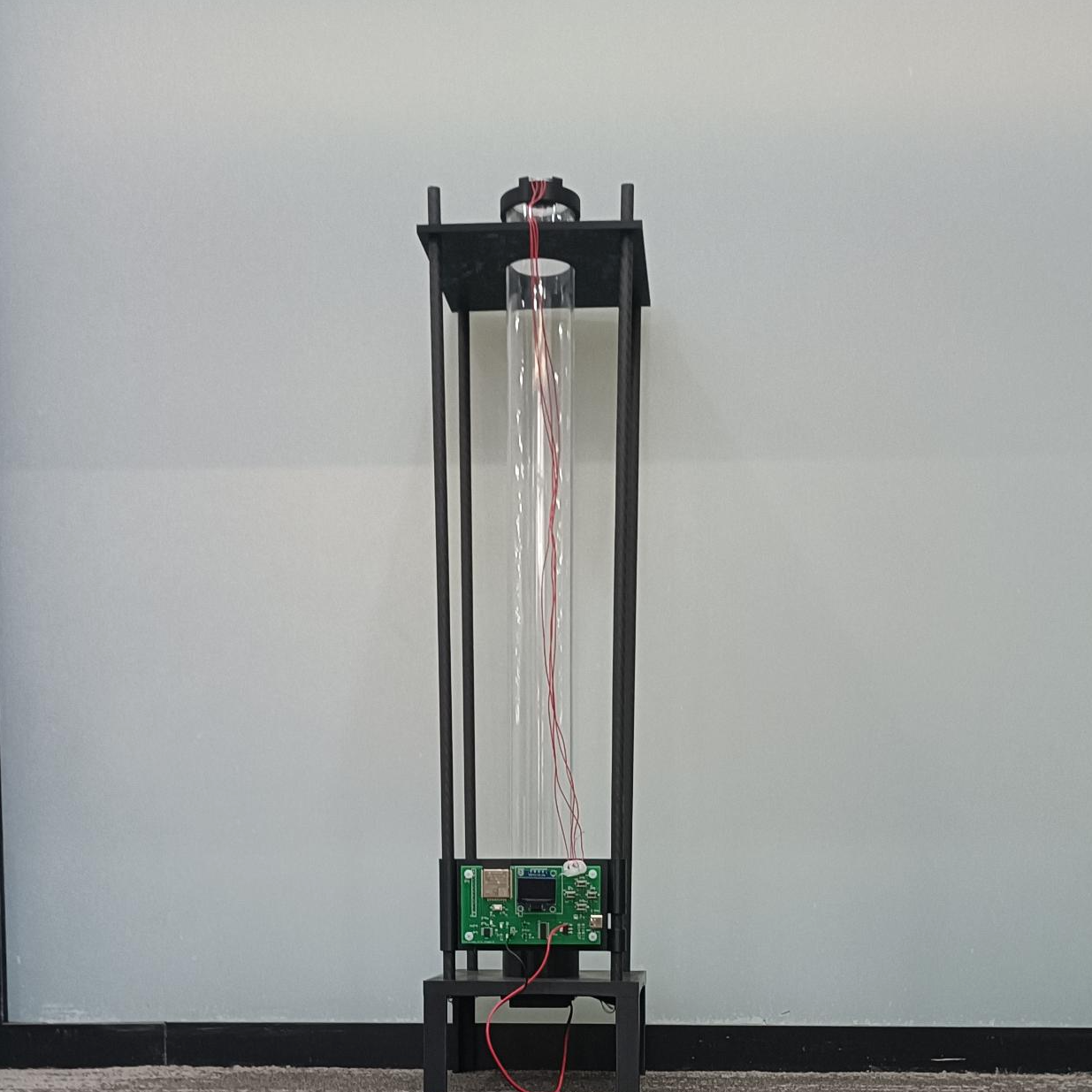 本项目将风扇安置在空心柱状管下方,以此建造一个风洞,使乒乓球可以稳定悬浮在固定位置附件;通过检测乒乓球距离空心柱状管上端激光测距传感器的距离,调整底部风扇功率大小,使乒乓球可以悬浮在预设位置附近。