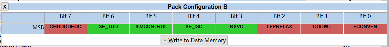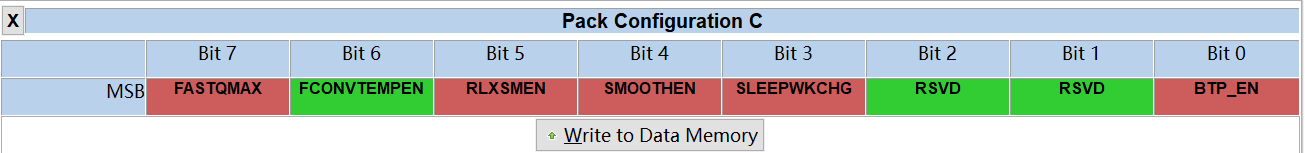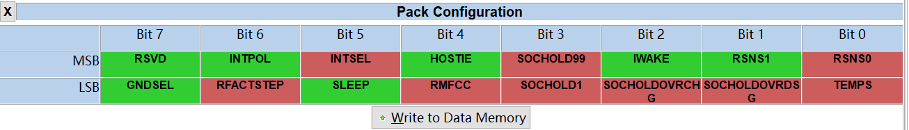 此段寄存器是电量计配置寄存器,用于配置电量计的各种功能,点击值后会跳出比特位供你配置,红色为1,绿色为0,有两条注意事项: