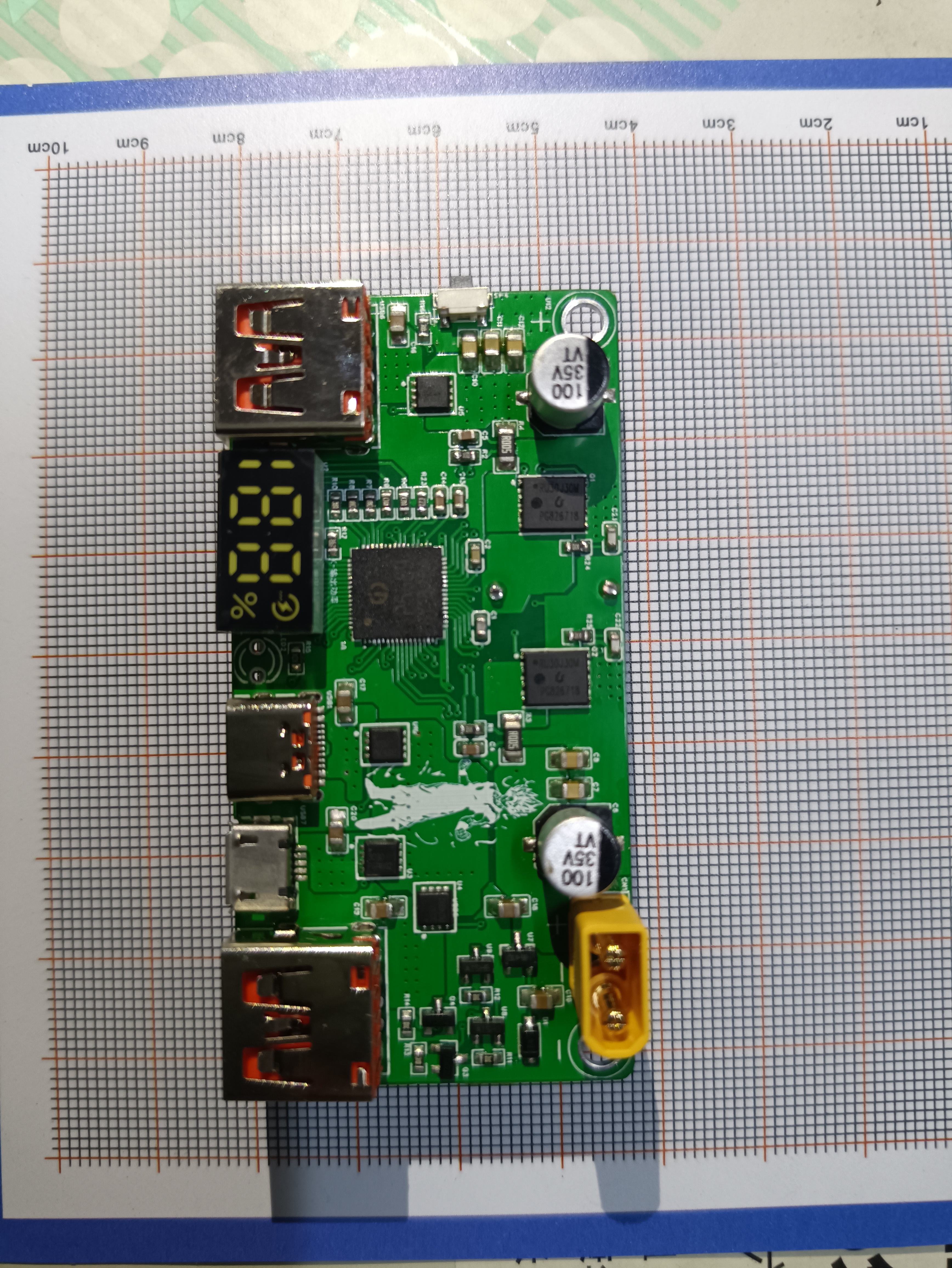 基于英集芯IP5389的双向PD100W快充,支持QC3.0+、FCP、AFC、SCP、VOOC、PD3.0、苹果BC2.1等快充协议,支持2/3/4/5节电芯串联,效率可达97%,数码管显示电量。