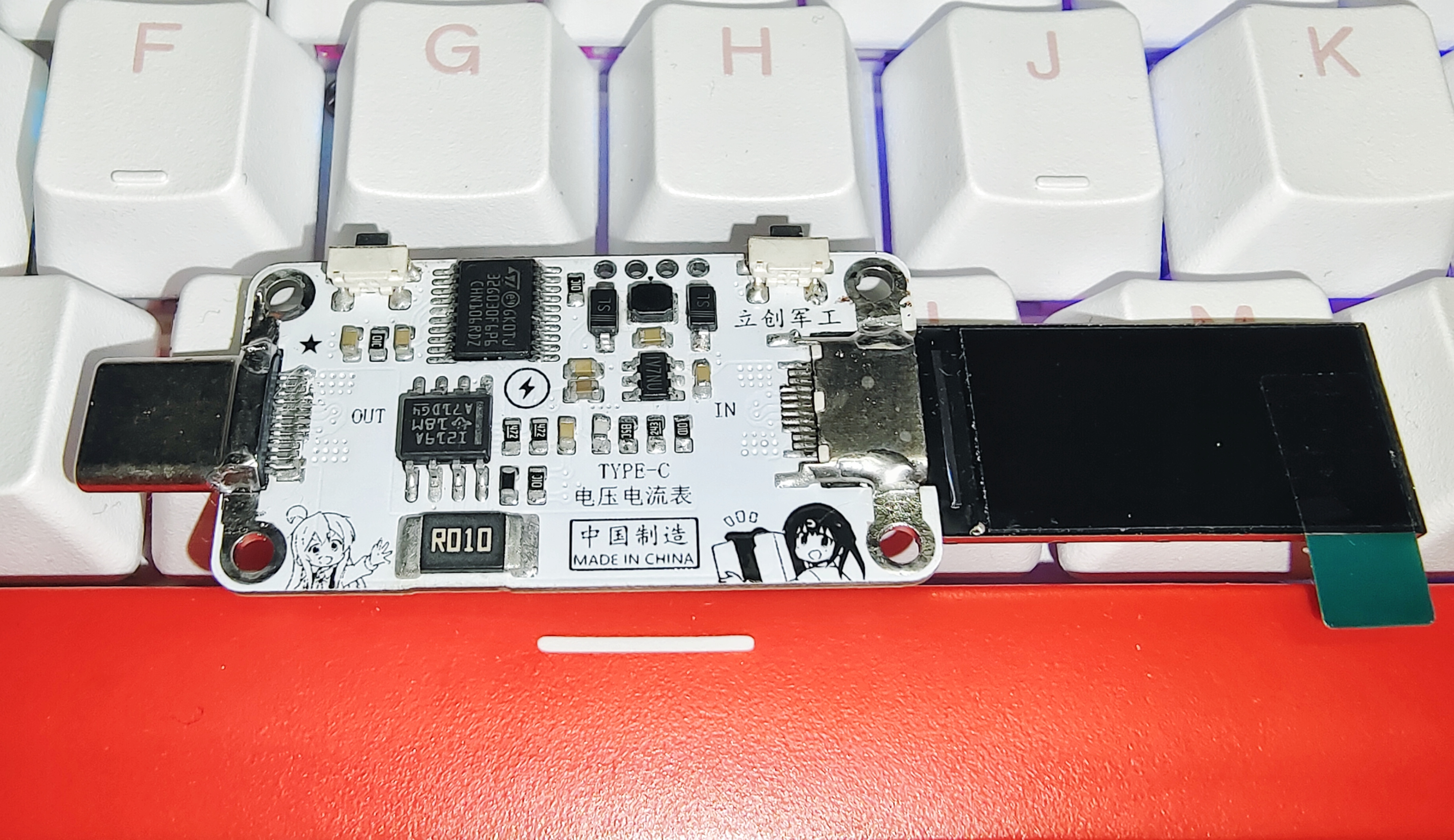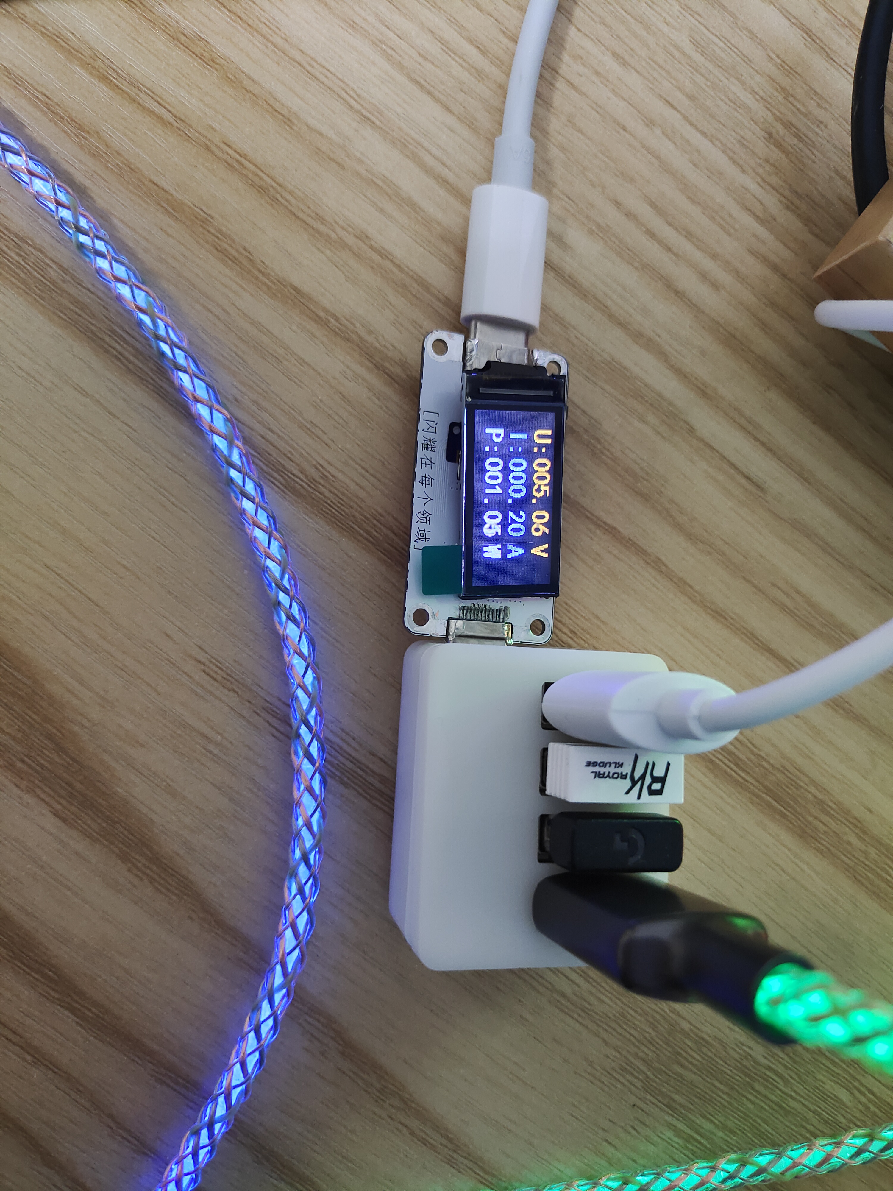 - 使用方法:将电压电流表串联在的数据线与被监测设备中间,上电后自动开机,自动开始检测并显示数据在屏幕上~