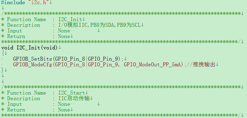 1. 第一路为 i2c接口,由于ch579没有i2c,使用gpio口B8/B9模拟,结合3.3v和gnd驱动 一个"I2C - OLED 0.96 "模组。设计及初始化源码如下