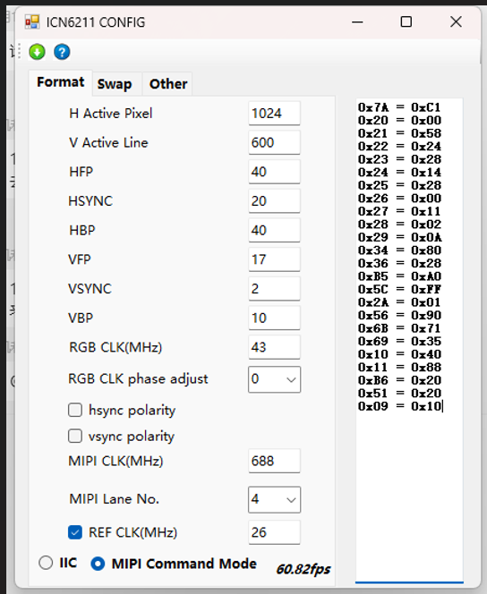 使用 ICN6211 作为信号转换芯片, MIPI信号转换为RGB(TTL)信号,以适配更广泛的液晶屏幕类型。 支持 1-4LANE MIPI信号输入,RGB888/666/565输出