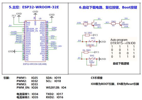 (5)(6)主控:ESP32-WROOM-32E及自动下载电路