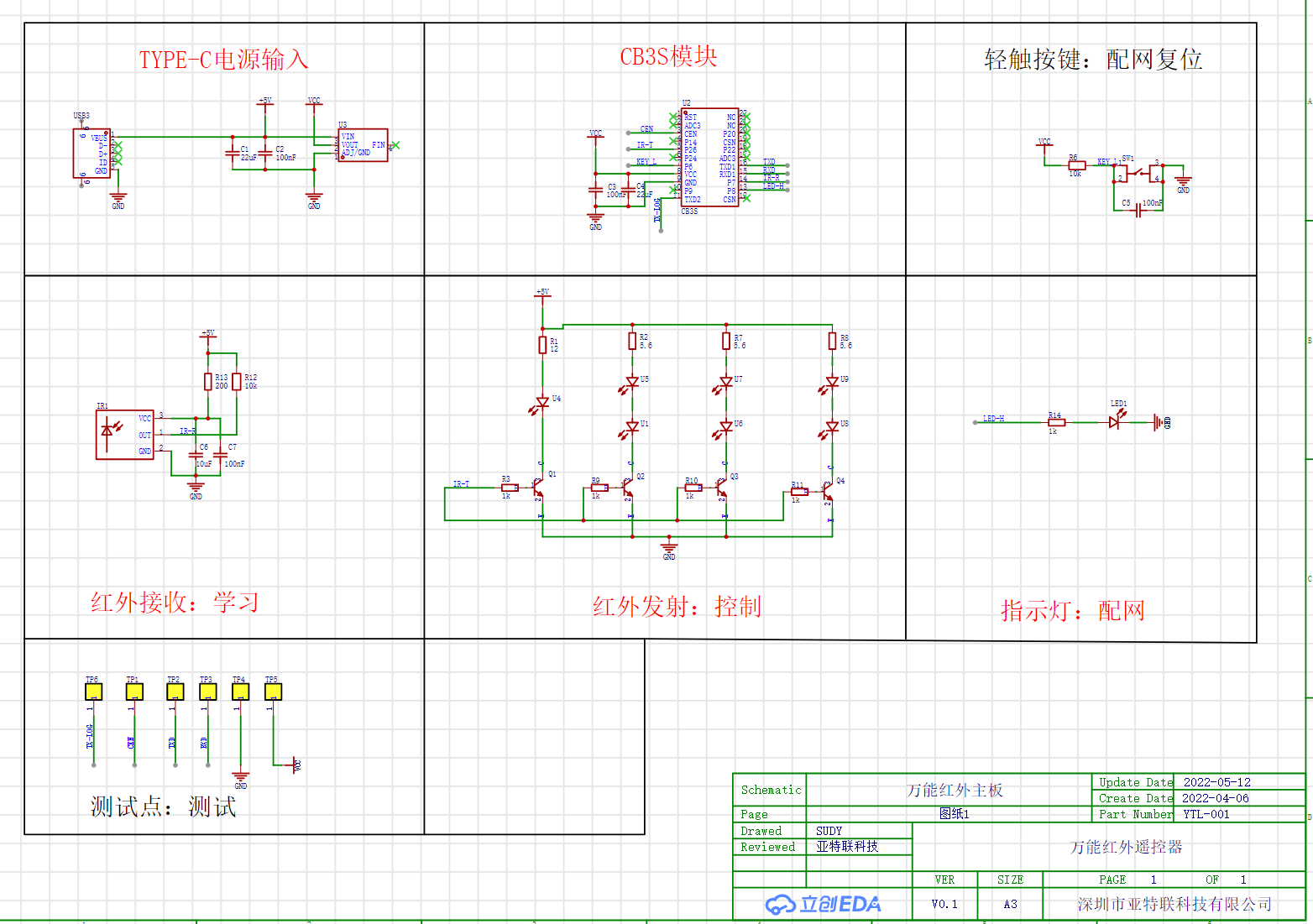 简介:使用亚特联CB3S免开发物联网械块开发的WIFI万能红外遥控器,可以控制市面上所有的由红外方式控制的产品,亲测实用。开源协议
