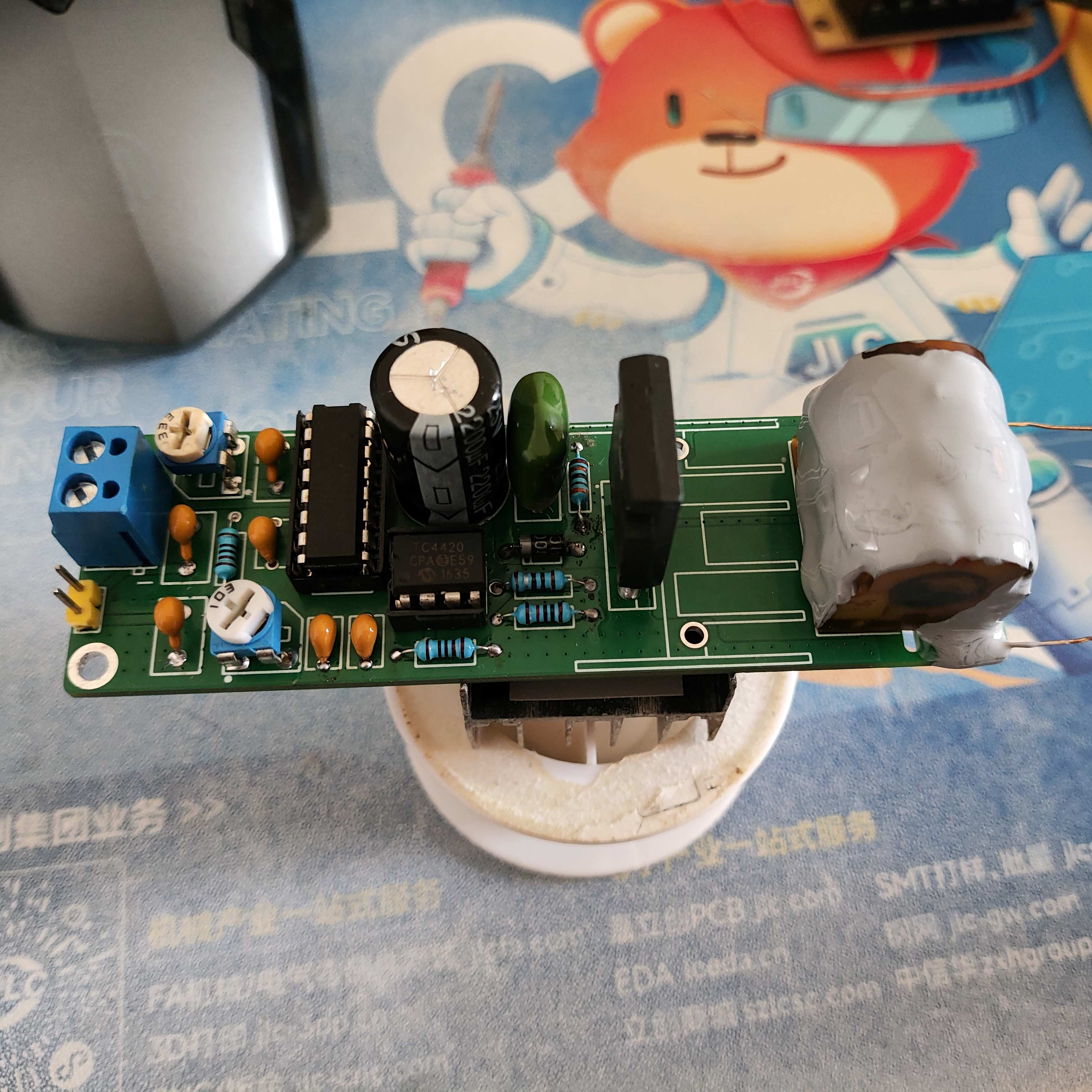 这个小高压包功率不大,大功率15mm电弧开半个小时会直接裂开,小功率大概10mm电弧可以开很久。