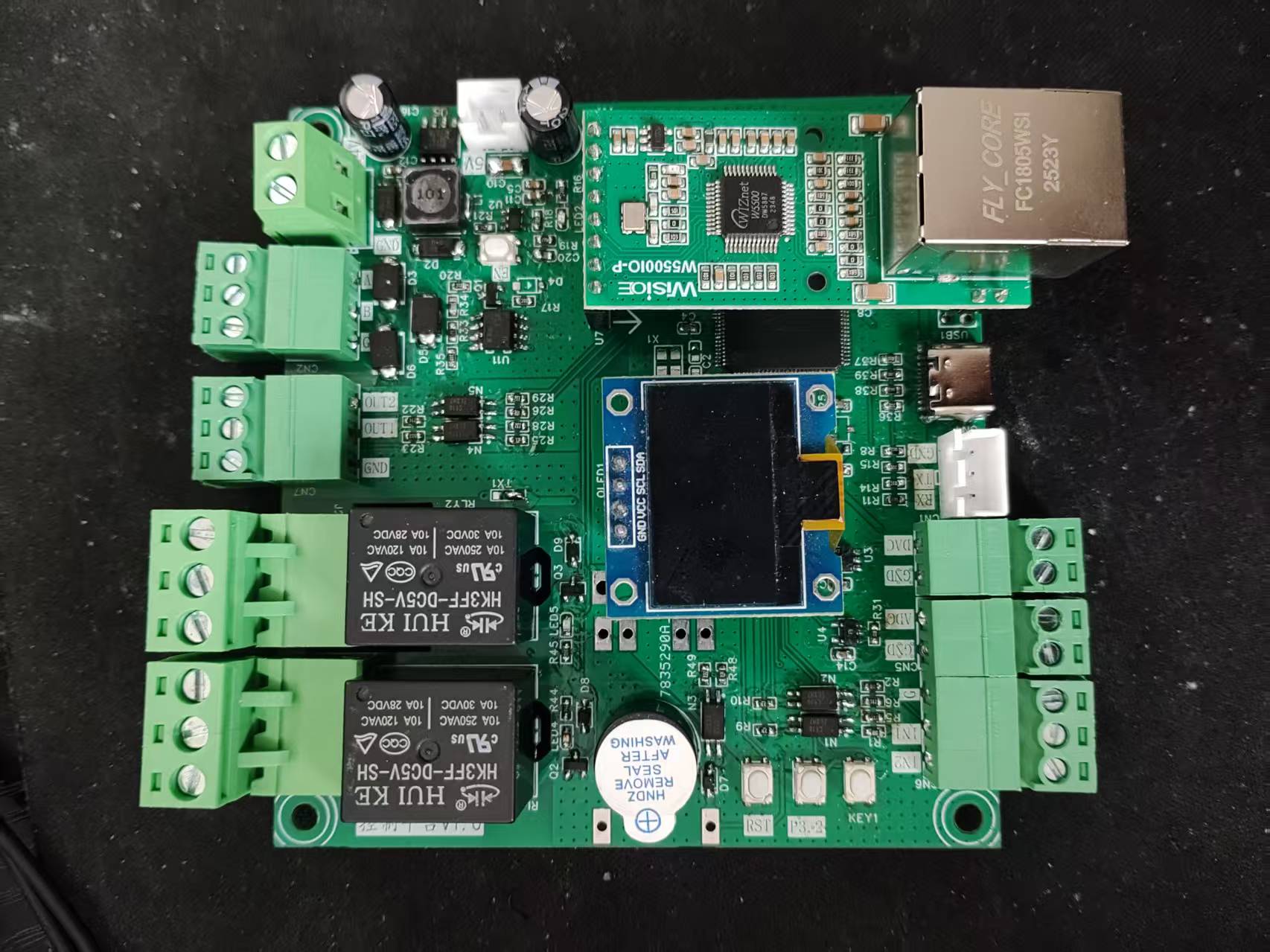 2路功率继电器控制。 继电器线圈的工作电压的选择,取决于电源输入电压的匹配。可以匹配5V,12V,24V等几种规格。
