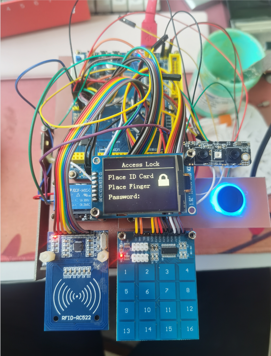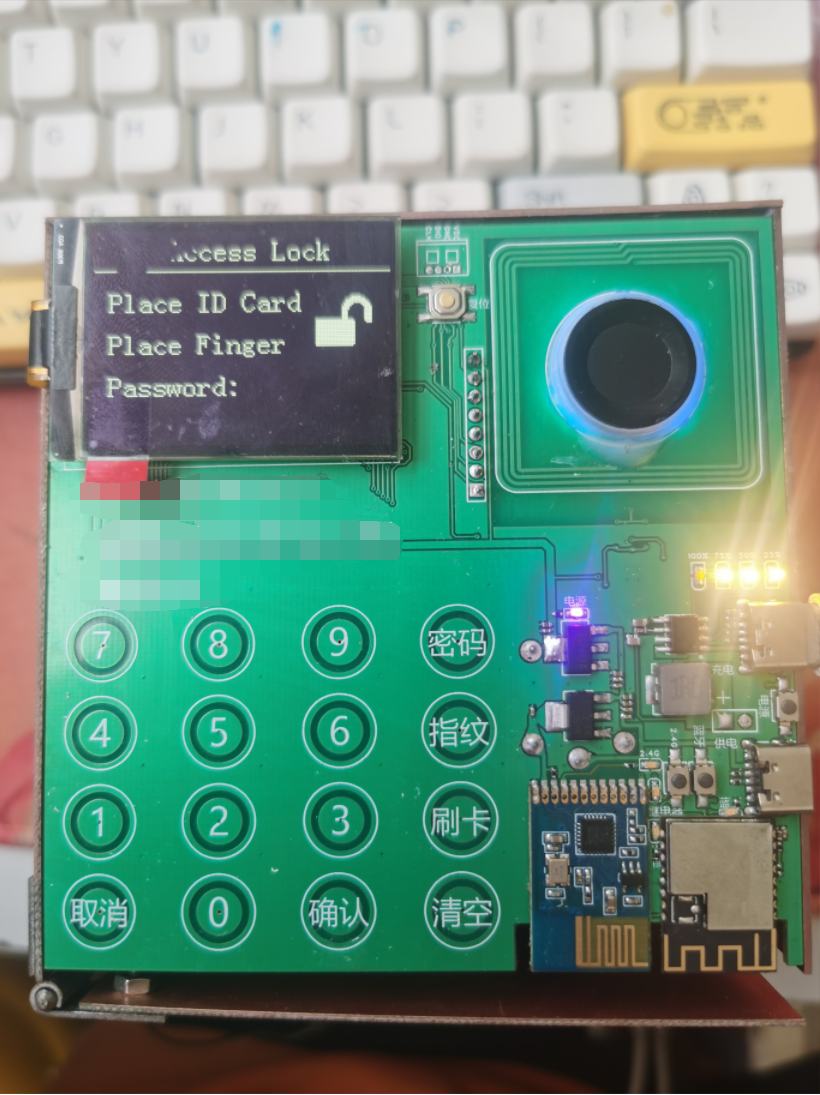 这是一款支持多种方式解锁的门锁设备 支持指纹解锁,触摸密码解锁,刷卡解锁,蓝牙靠近解锁,遥控器解锁。对于要求不高的可以去水个课设或者毕设。(实际上这些功能也就是靠堆模块就能解决)