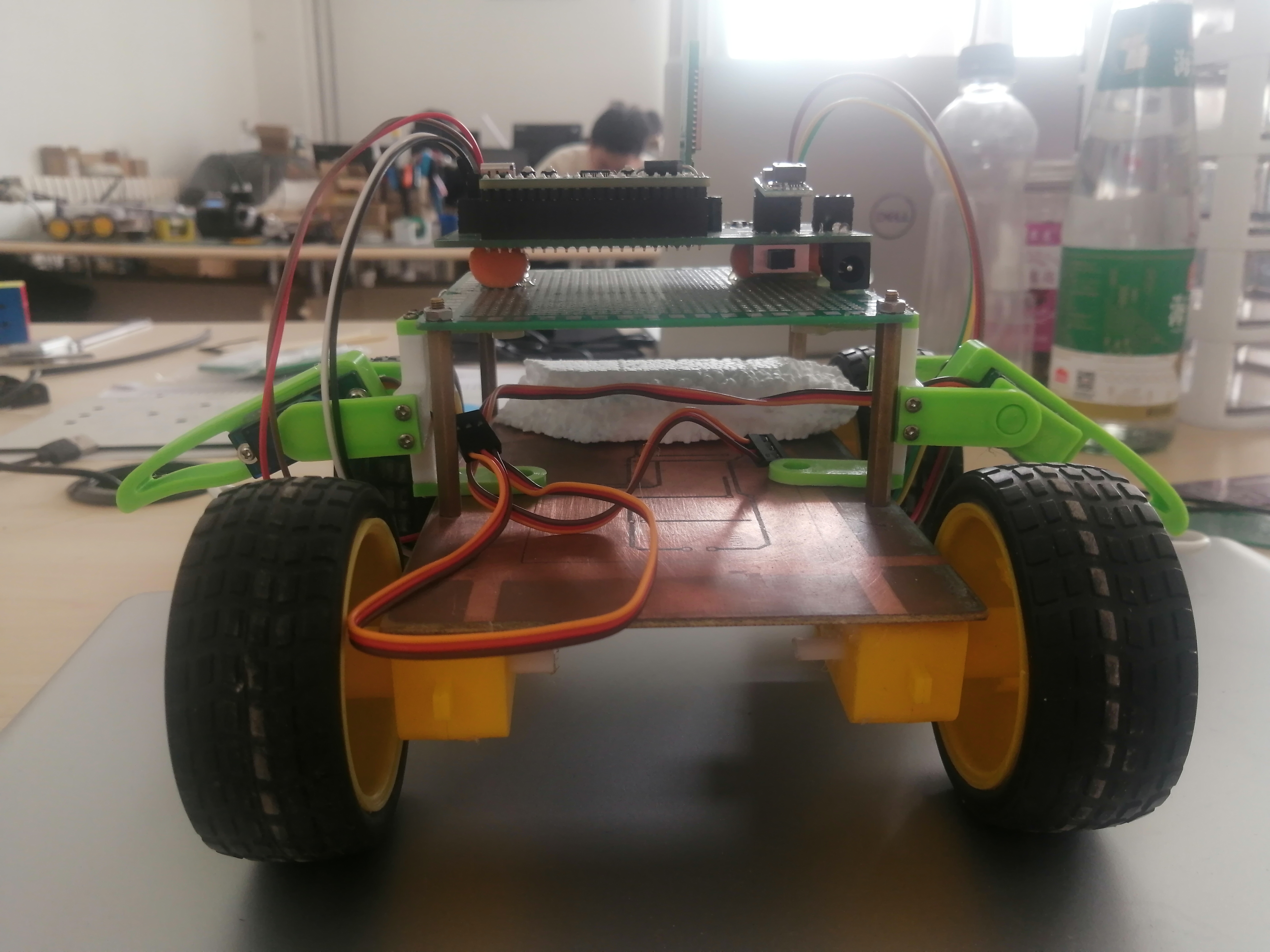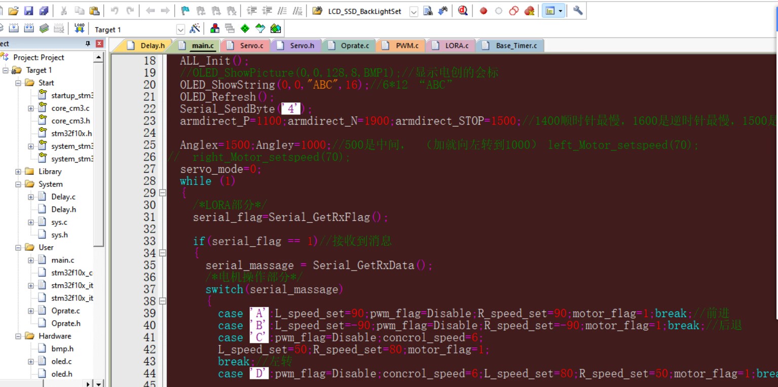 该小车以51单片机为主控,Lora远程控制,可实现蓝牙遥控,用自制遥控器可以进行遥控,lcd液晶屏显示行驶时间和路程,控制蜂鸣器的开关,小车前面加上了大灯,有机械手抓取小功能。