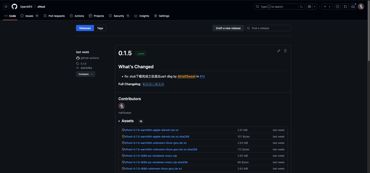 sftool 是一个开源软件,可以在GitHub 上找到它的源码。不过我们现在并不需要关心源码,只需要下载编译好的二进制文件即可。