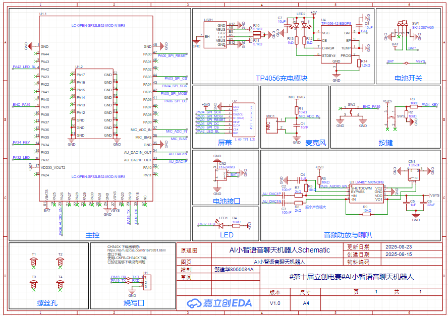 此项目是基于立创开源蓝牙模组 SF32LB52-MOD-N16R8 制作的简易AI语音聊天机器人属于开源项目。