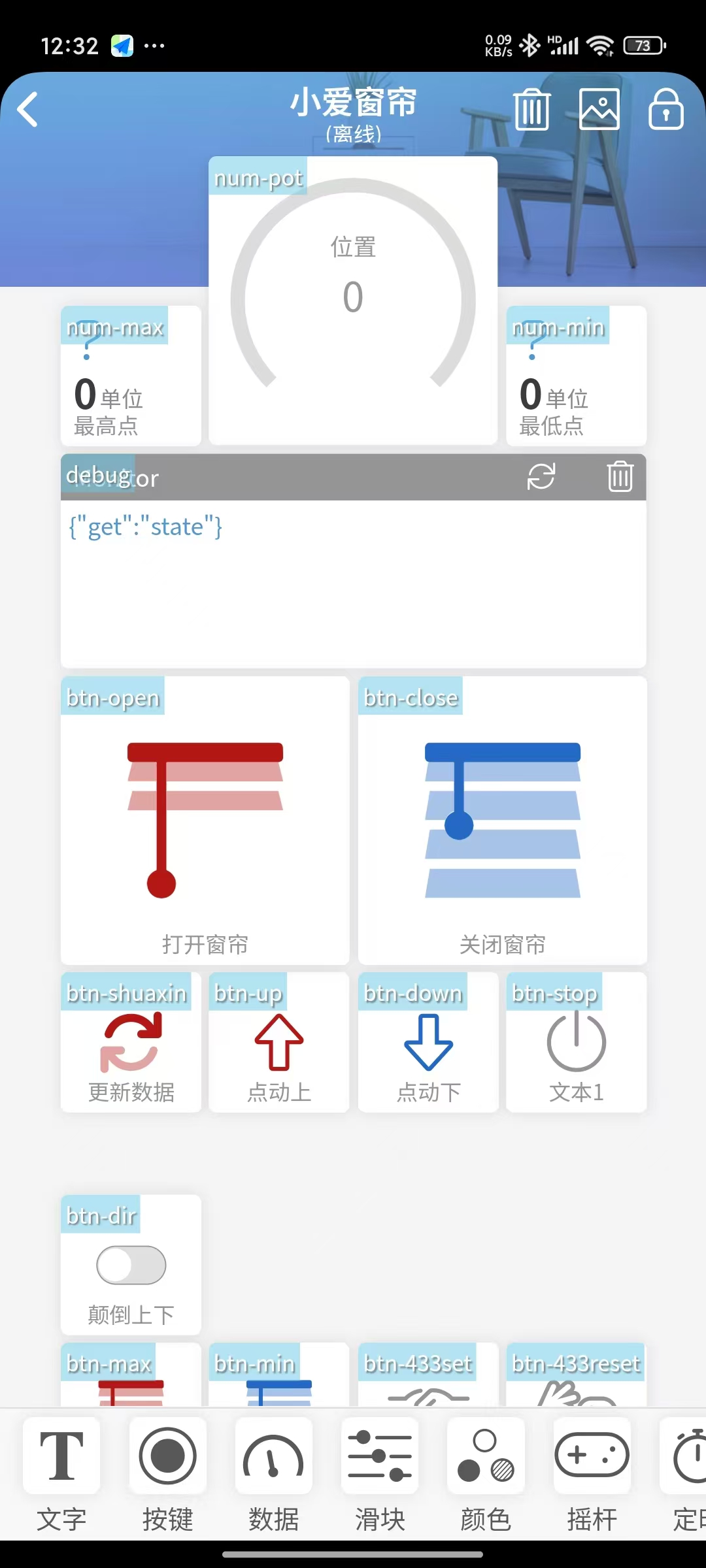 10.手机app使用blinker。控件名字按这个写,或者自己在arduino文件里面修改。