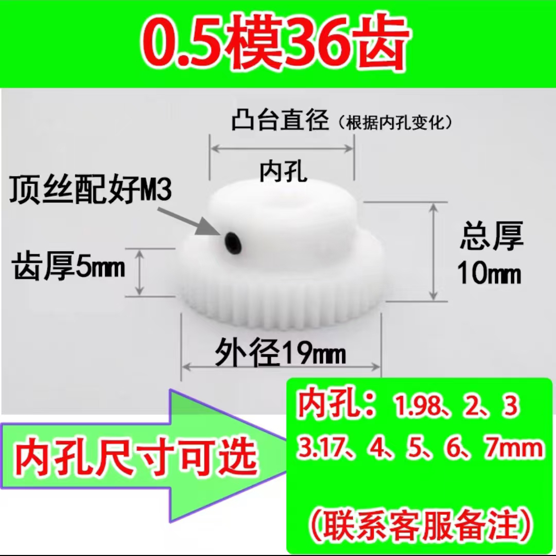 3.电位器用10kΩ,10圈,电位器轴4mm,带顶丝36齿齿轮内径也要买4mm的。