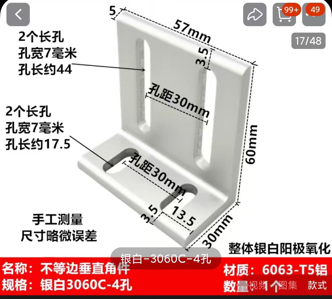 5.电机支架和窗帘支架连接的这块铝型材,用3060-4孔,可以方便的调整位置。