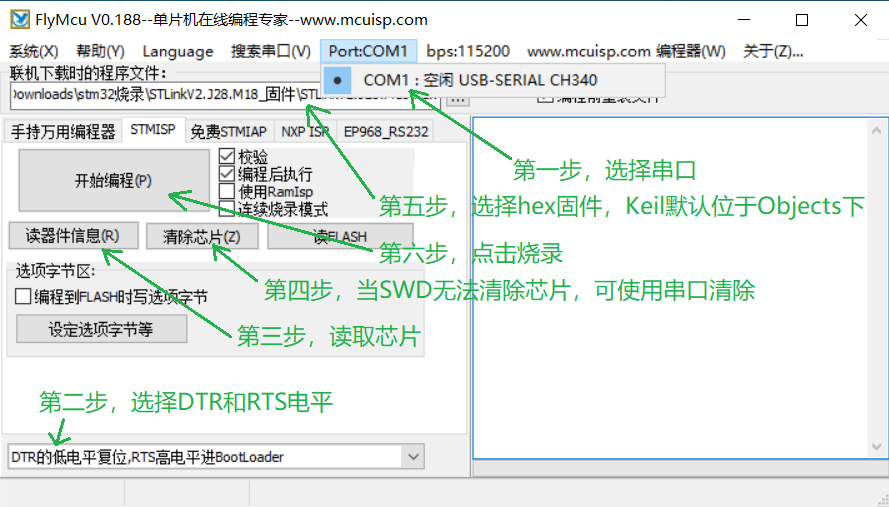 (2)实测固件升级后才能使用,使用usb连接,用附件stsw-link007升级。固件升级后芯片被读写保护,只能用串口烧录工具擦除(若需要)