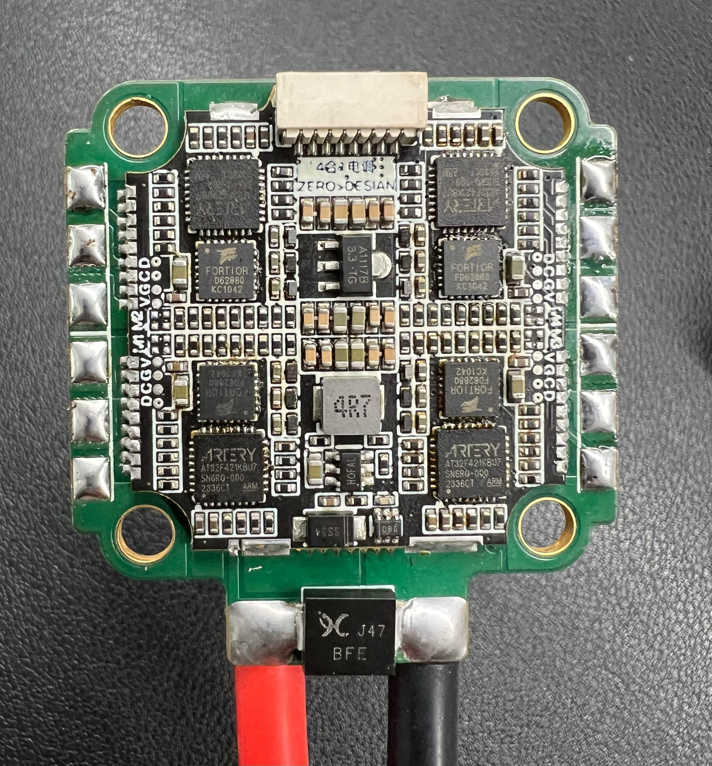 本次电调采用2片PCB组合方式,同时阻容都采用0402以上封装,焊接方便。使用英飞凌金封mos管。