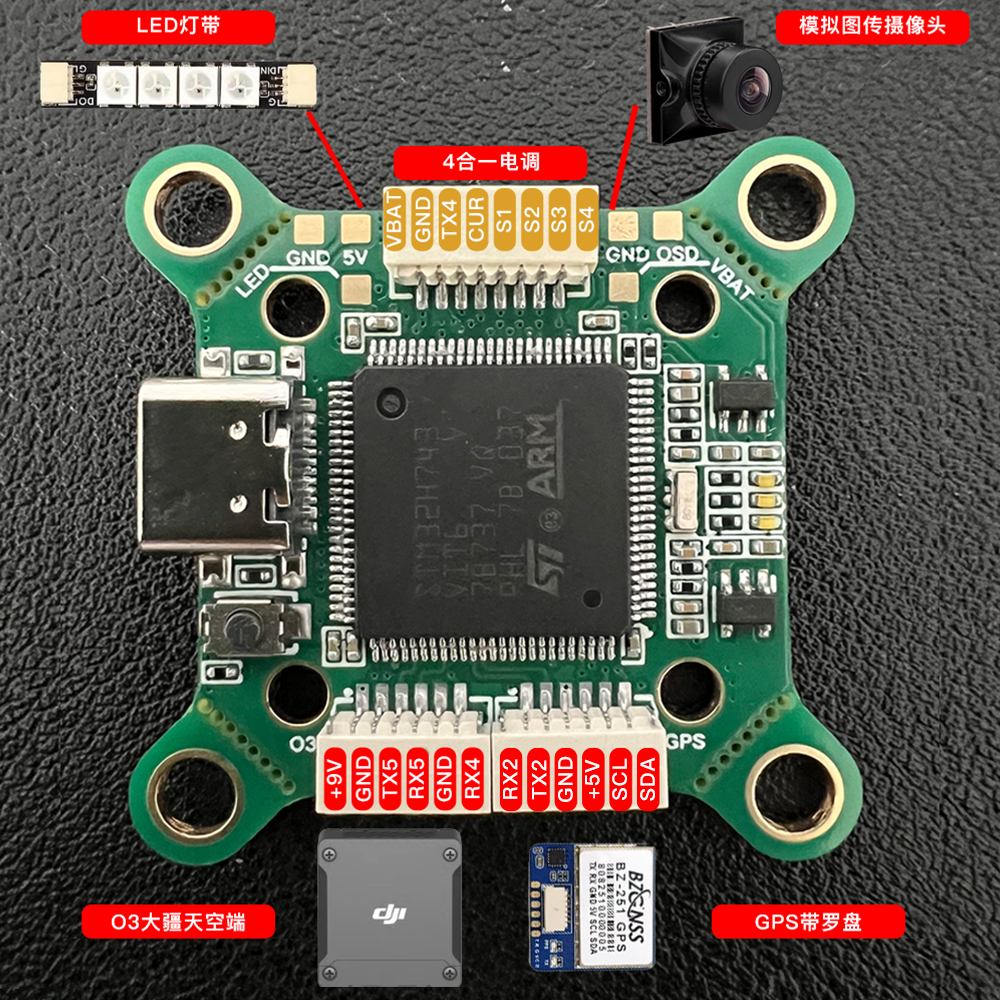 采用STM32H743VIT6制作的一款飞控。阻容最小为0402,方便焊接。某宝H743飞控199起步,本飞控制作成本百元以内。支持BF、INAV、APM三种固件(最新固件Q群:154782128获取)