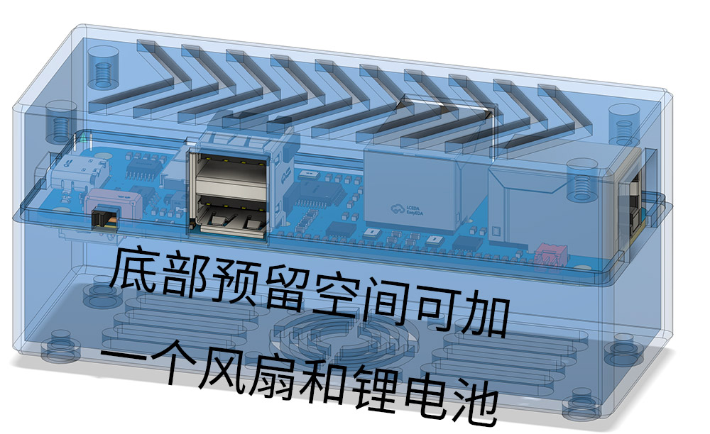 随身WiFi双网口配置,配合随身WiFi可以充当小型五服务器等。也可以当成普通的扩展坞使用。但是只有USB2.0的速率。通过FE2.1芯片1拖7进行扩展。采用RTL8152B的双百兆网口,GL823K的TF读卡器,CH340扩展串口和2个USB-A口、1个TYPE-C。并且集成锂电池充放电模块采用TP5400。板子整体布局比较紧凑。全部功能已经验证。并且适配了外壳(件附件)