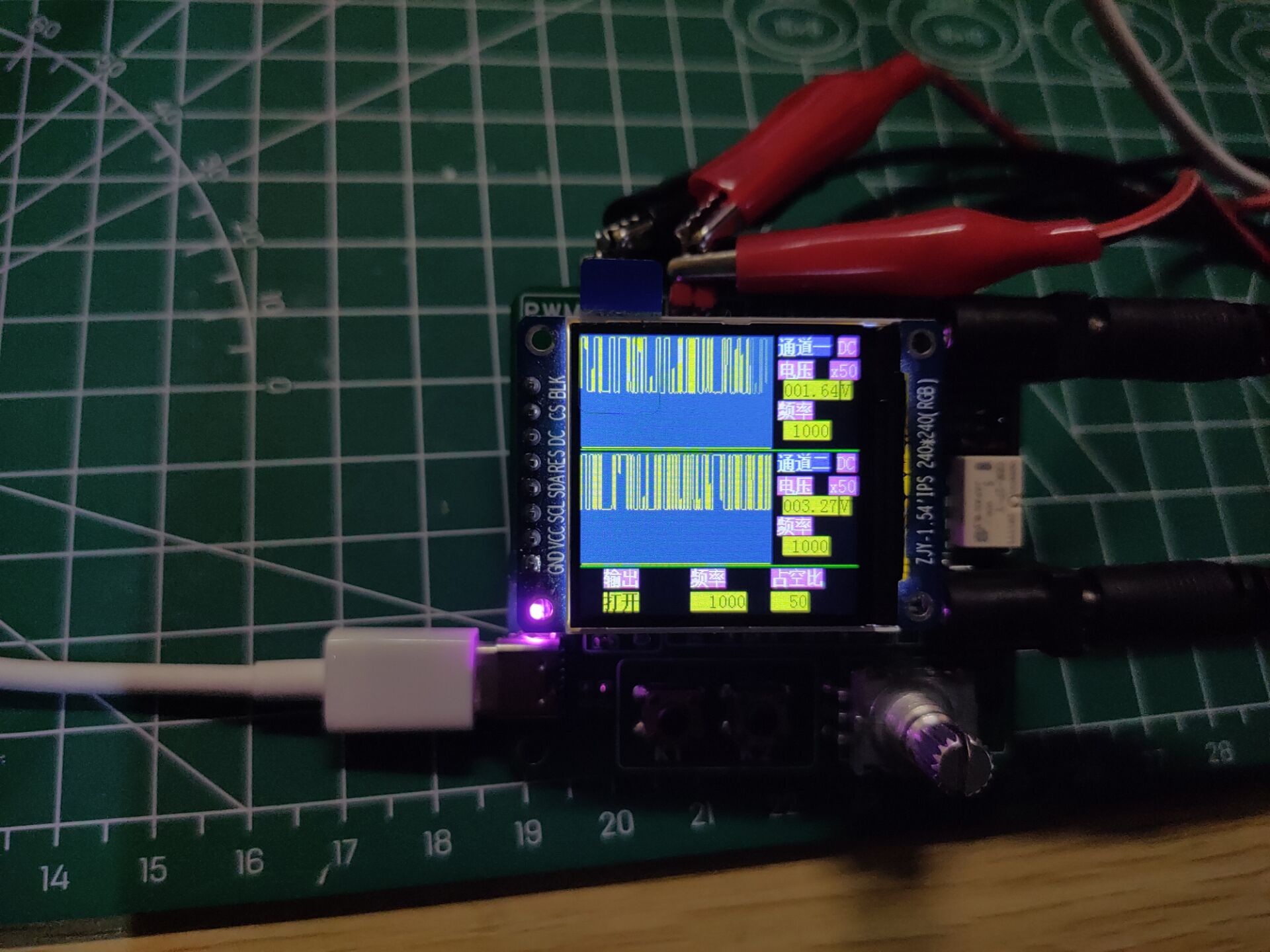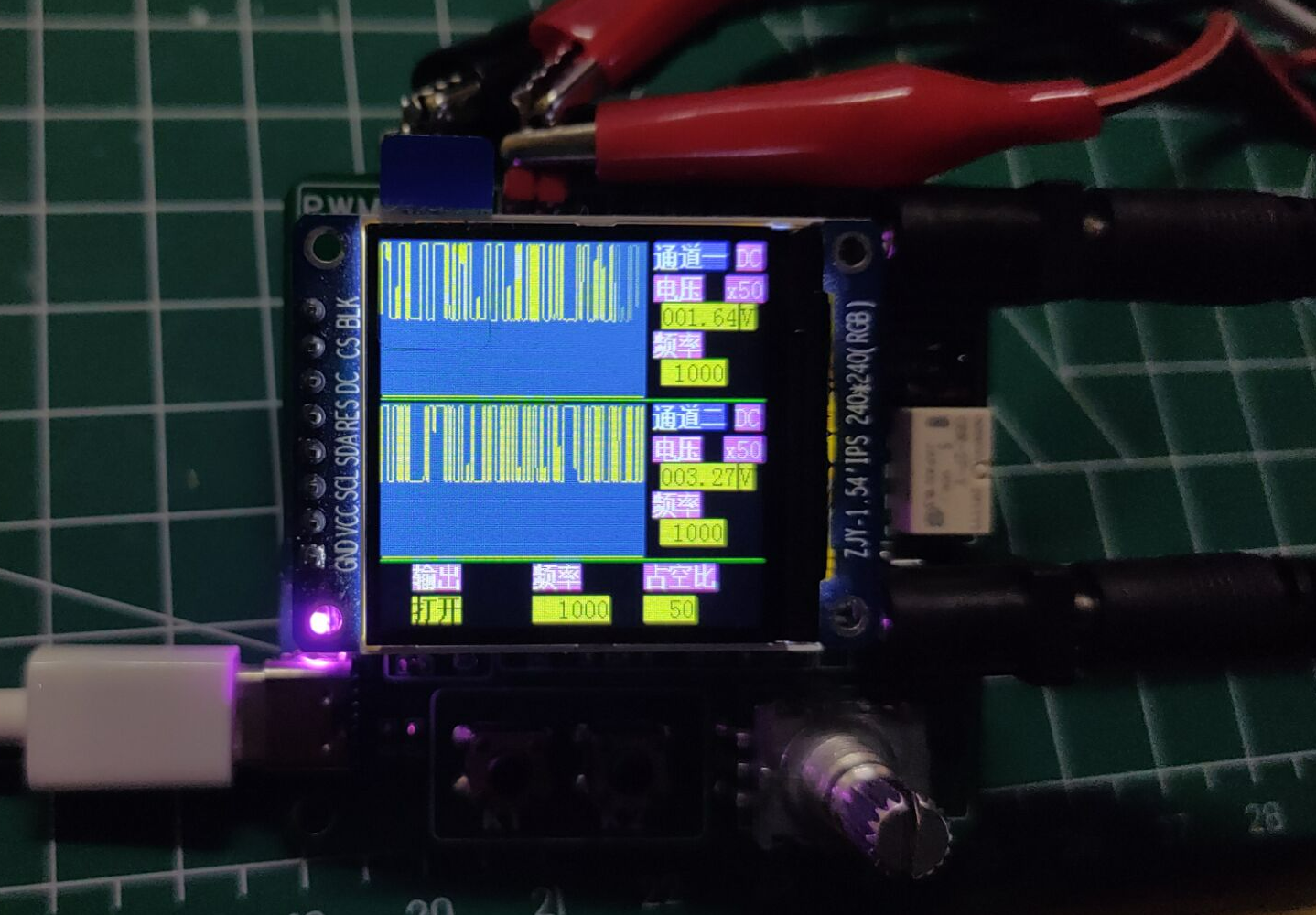 1.2 一路pwm输出,频率10-10k范围可调,占空比0-100%可调。