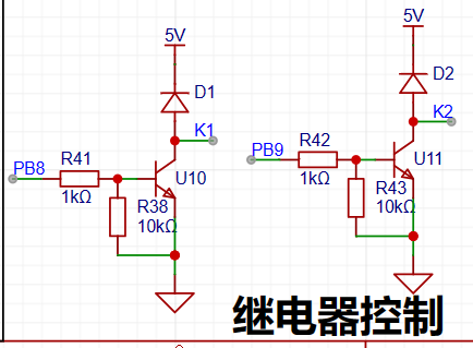 D1,2为续流二极管,使用npn三极管实现3.3v控制5v。