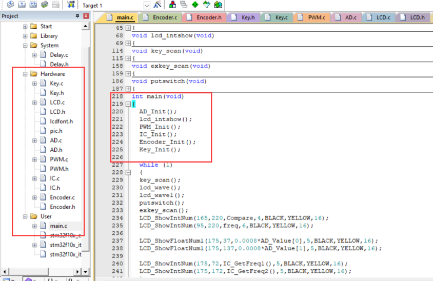 1.1 拥有双通道测量,可同时测量频率和电压。 1.2 一路pwm输出,频率10-10k范围可调,占空比0-100%可调。 1.3 采用继电器进行交直流切换和x1,x50挡位的切换。