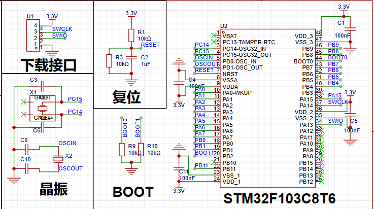 下载接口和复位采用贴片焊盘方式,大大缩小面积,下载用弹簧探针即可!