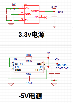 5v电源直接采用c口输出,3.3v使用RT9013线性稳压芯片,-5v采用芯邦微的sgm3204。