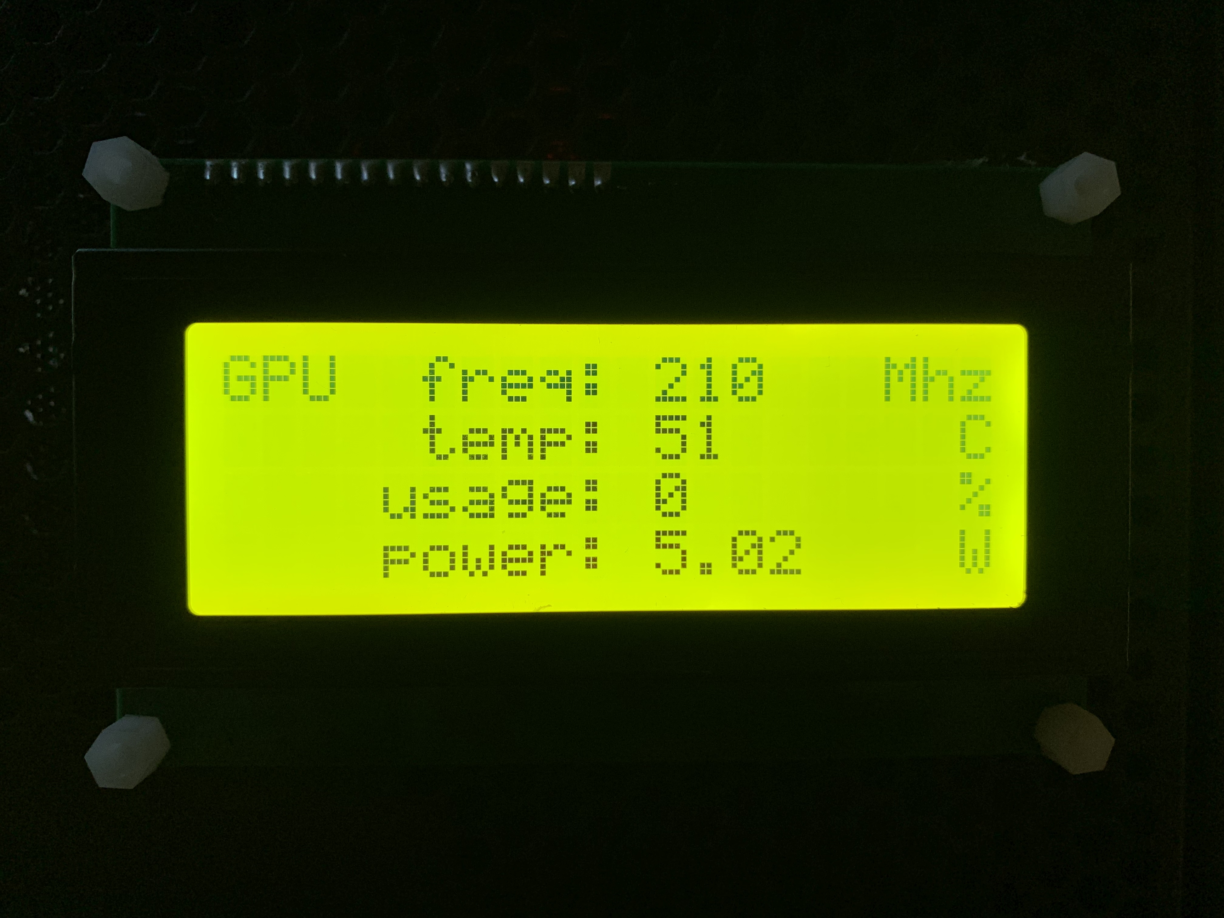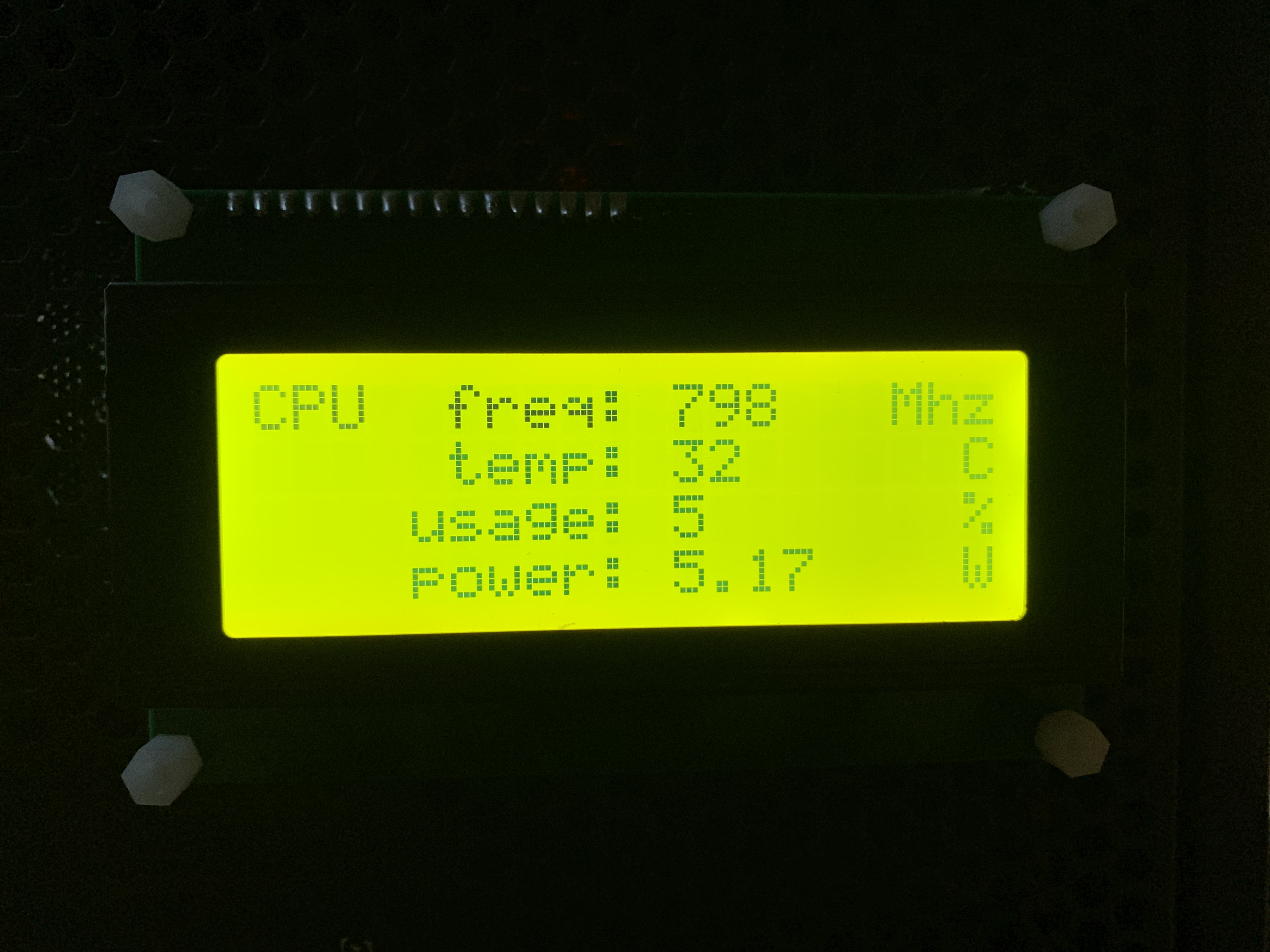 lcd.setCursor(0,0);lcd.print("GPU freq: ");lcd.setCursor(11,0);lcd.print(GPU_freq);lcd.setCursor(17,0);lcd.print("Mhz");