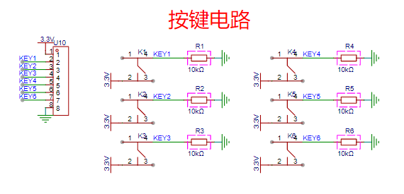 按键板电路非常简单,原理图如图8所示,电路板仿真图如图9(a)所示,电路板实物图如图9(b)所示。