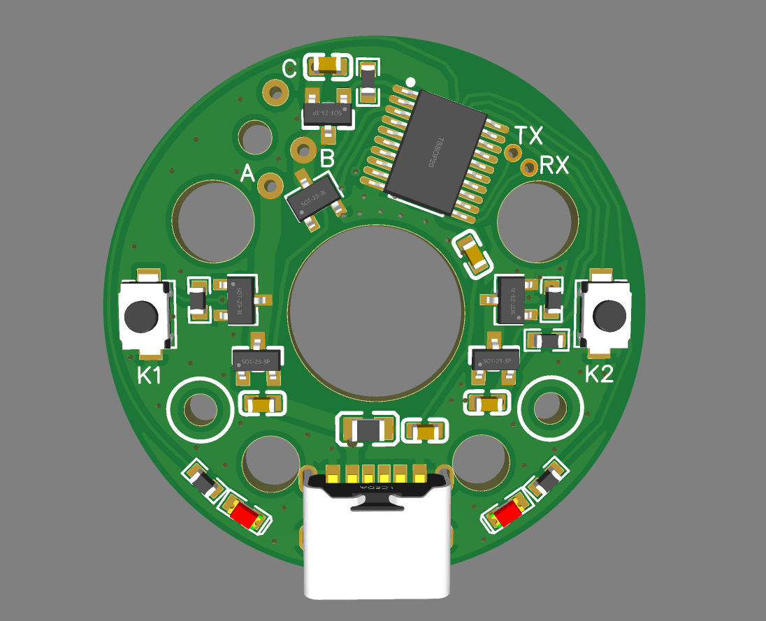 针对电机的固定螺丝孔位和接线位置,设计了一个集成式驱动电路板,安装到一起后一体化效果很棒。