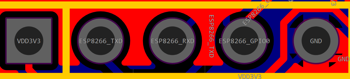 3.模块左下角有一排1x5P接线柱,用于为ESP8266烧录程序,请自行准备TTL烧录器并预先了解ESP8266芯片烧录教程,引脚定义从左到右如下图所示: