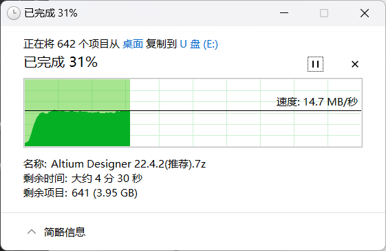 1.单口usb传输速度测试(黑胶体U盘测试):约为15MB/S